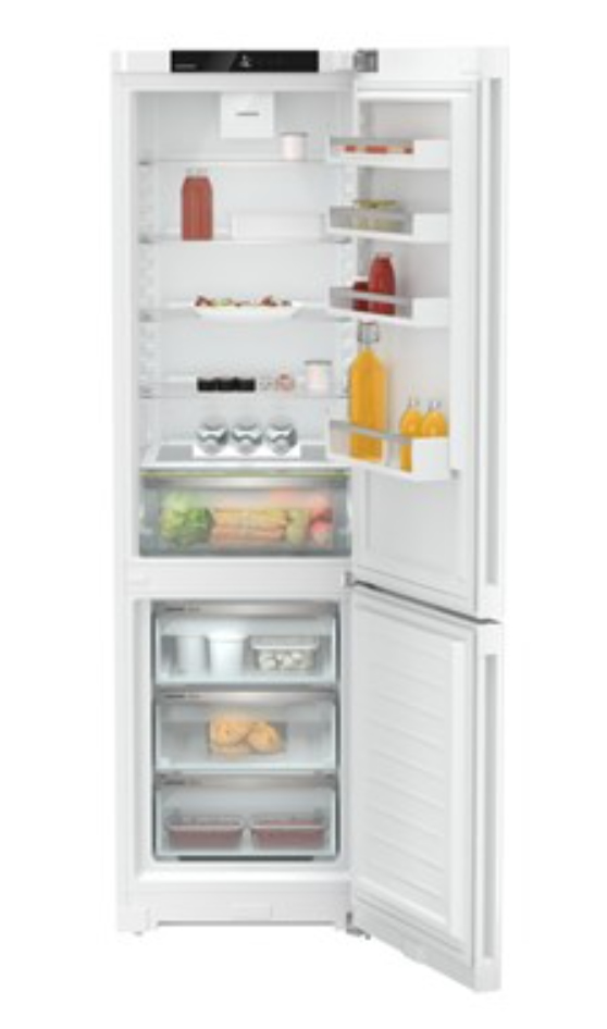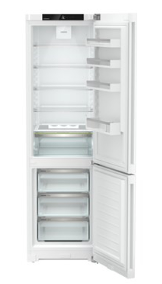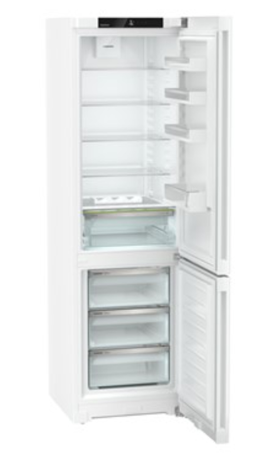 Liebherr CNd 5703 Pure. Capacità netta totale: 371 L. Cerniera porta: Destra, Tipo di display: LCD. Classe climatica: SN-T, Emissione acustica: 36 dB. Capacità netta frigorifero: 268 L, No Frost (frigorifero), Luce interna. Capacità netta congelatore: 103 L, Capacità di congelamento: 10 kg/24h, No Frost (congelatore). Compartimento zona fresca. Classe efficienza energetica: D, Consumo energetico annuo: 203 kWh. Colore del prodotto: Bianco