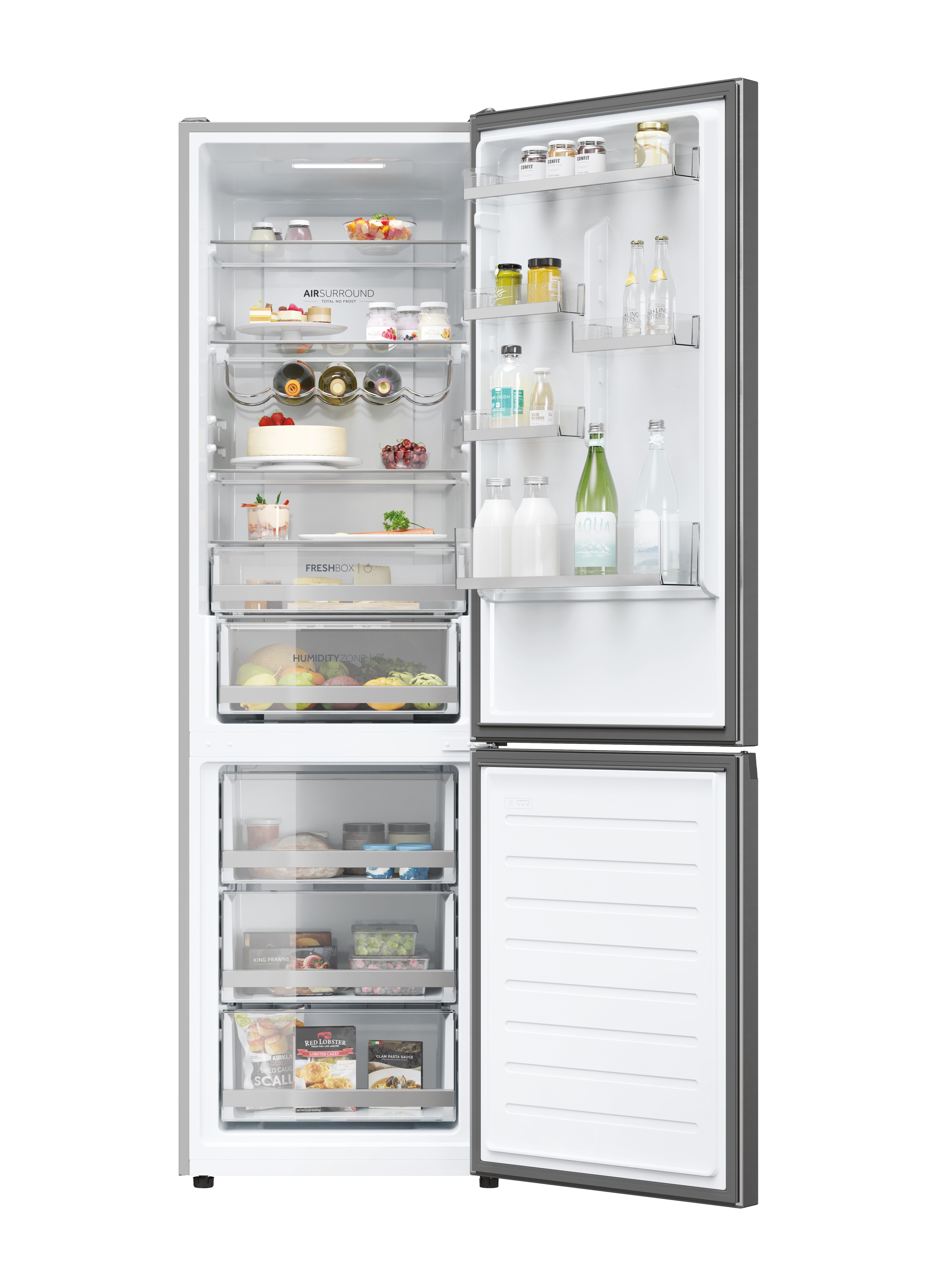 Con Haier Air Surround Fresher Tech, l'aria scorre all’interno del frigorifero in modo più omogeneo così da mantenere il gusto, la consistenza e la succosità degli alimenti fino al 99%* dopo 7 giorni come il giorno 1. Infatti, grazie alle speciali uscite laterali sulla colonna, questo sistema distribuisce l'aria fredda uniformemente così da avvolgere gli alimenti in tutta la cavità del frigorifero ed evitando il flusso diretto sugli stessi, al fine di mantenerne la consistenza. *Risultati dei test rilasciati da un laboratorio tecnico esterno indipendente confrontando un frigorifero con tecnologia Total No Frost Circle + con un frigorifero con tecnologia a flusso diretto.
