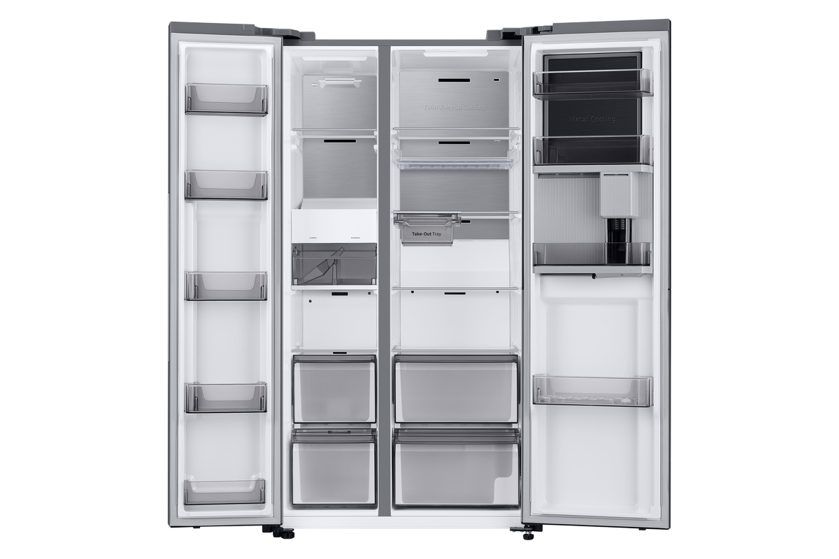 Questo frigorifero, grazie alla tecnologia SpaceMax™, garantisce una capacità interna di 645 litri. Lisolante a elevata efficienza della tecnologia SpaceMax™ consente di ridurre notevolmente lo spessore delle pareti, creando più spazio per la conservazione degli alimenti, senza antiestetiche sporgenze esterne. Inoltre, il Beverage Center™ aumenta la capacità del freezer di ben 11 litri[4].