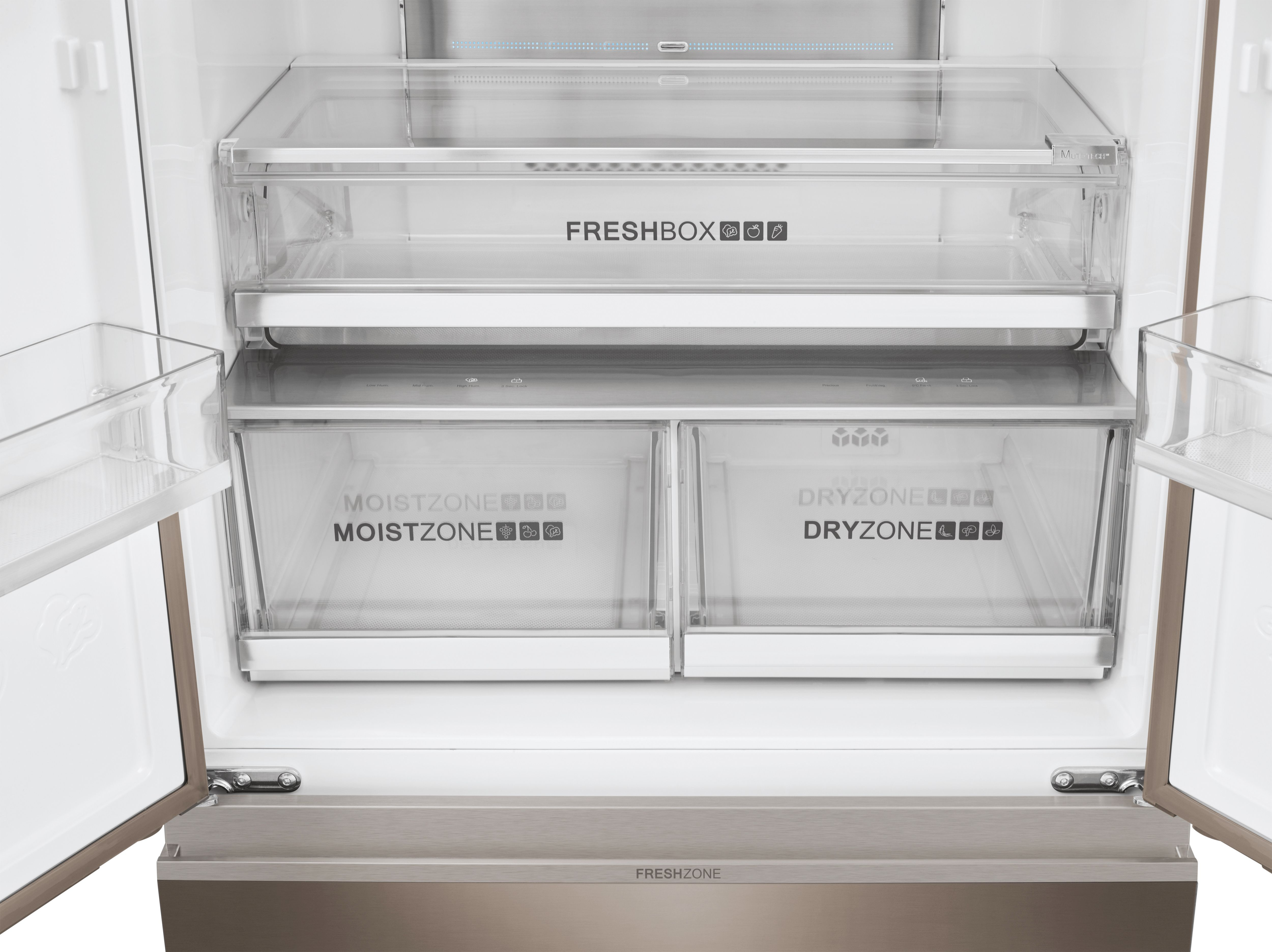 Le eleganti French Door Haier conferiscono al frigorifero un innegabile tocco di modernità mentre il design ergonomico delle quattro porte rende gli interni più accessibili che mai.