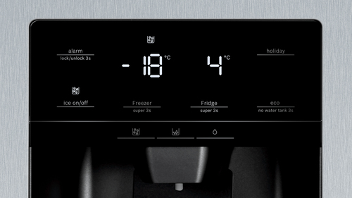 Bosch Serie 6 KAI93VIFP. Posizionamento dell'apparecchio: Libera installazione, Design del prodotto: Porta americana, Colore del prodotto: Acciaio inossidabile. Capacità netta totale: 562 L, Classe climatica: SN-T, Classe emissione rumore: D. Capacità netta frigorifero: 371 L, Tipo di lampada: LED. Capacità netta congelatore: 191 L, Posizione del congelatore: Posizionato lateralmente, Capacità di congelamento: 13 kg/24h. Lunghezza cavo: 1,7 m