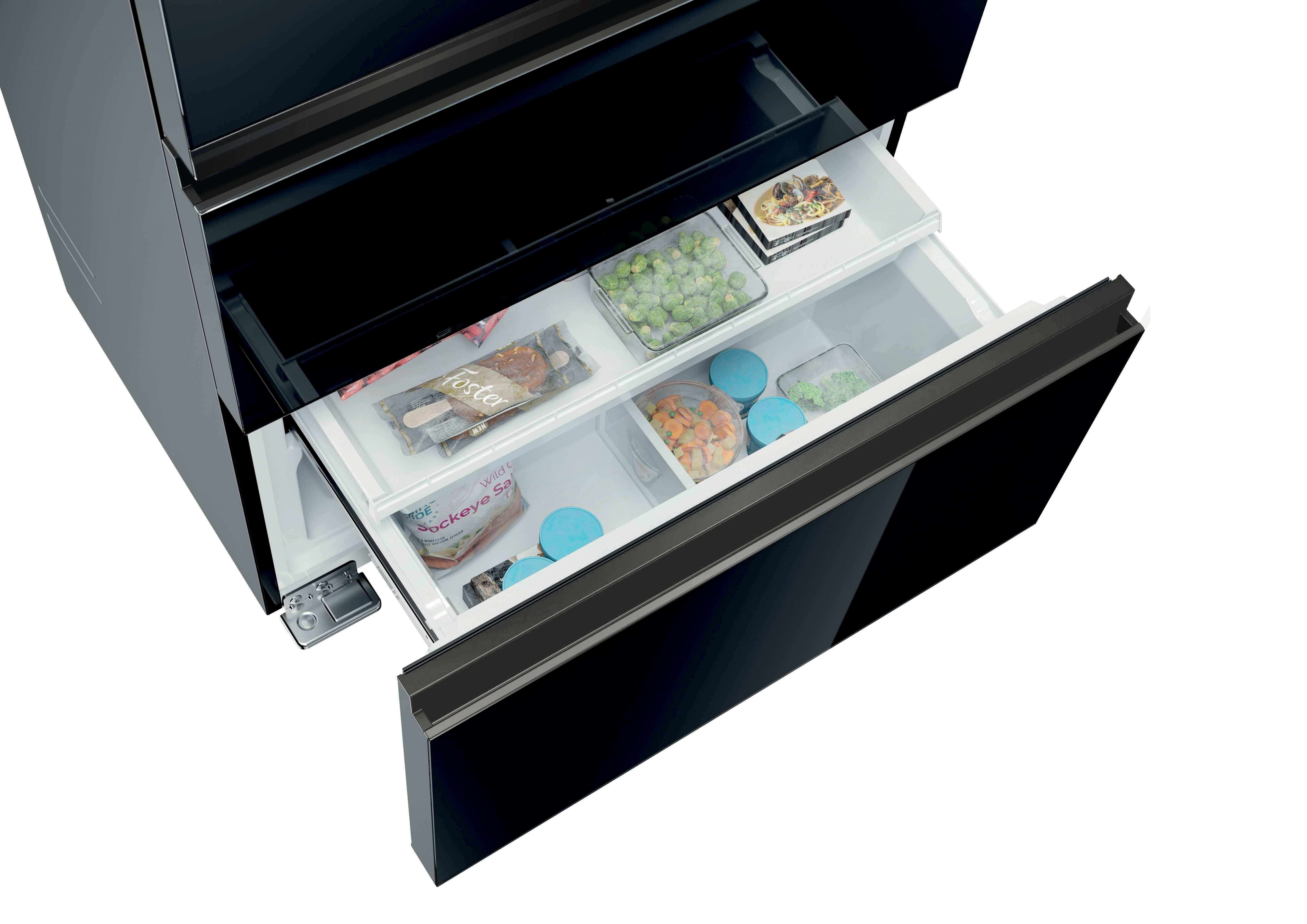 Haier HFKR7819DNGB. Capacità netta totale: 468 L, Classe climatica: SN-T, Emissione acustica: 35 dB. Capacità netta frigorifero: 299 L, No Frost (frigorifero), Luce interna, Numero di ripiani frigorifero: 3, Numero di cassetti per verdura: 2. Capacità netta congelatore: 169 L, Capacità di congelamento: 11 kg/24h, No Frost (congelatore). Compartimento zona fresca. Classe efficienza energetica: D, Consumo energetico annuo: 241 kWh. Colore del prodotto: Nero