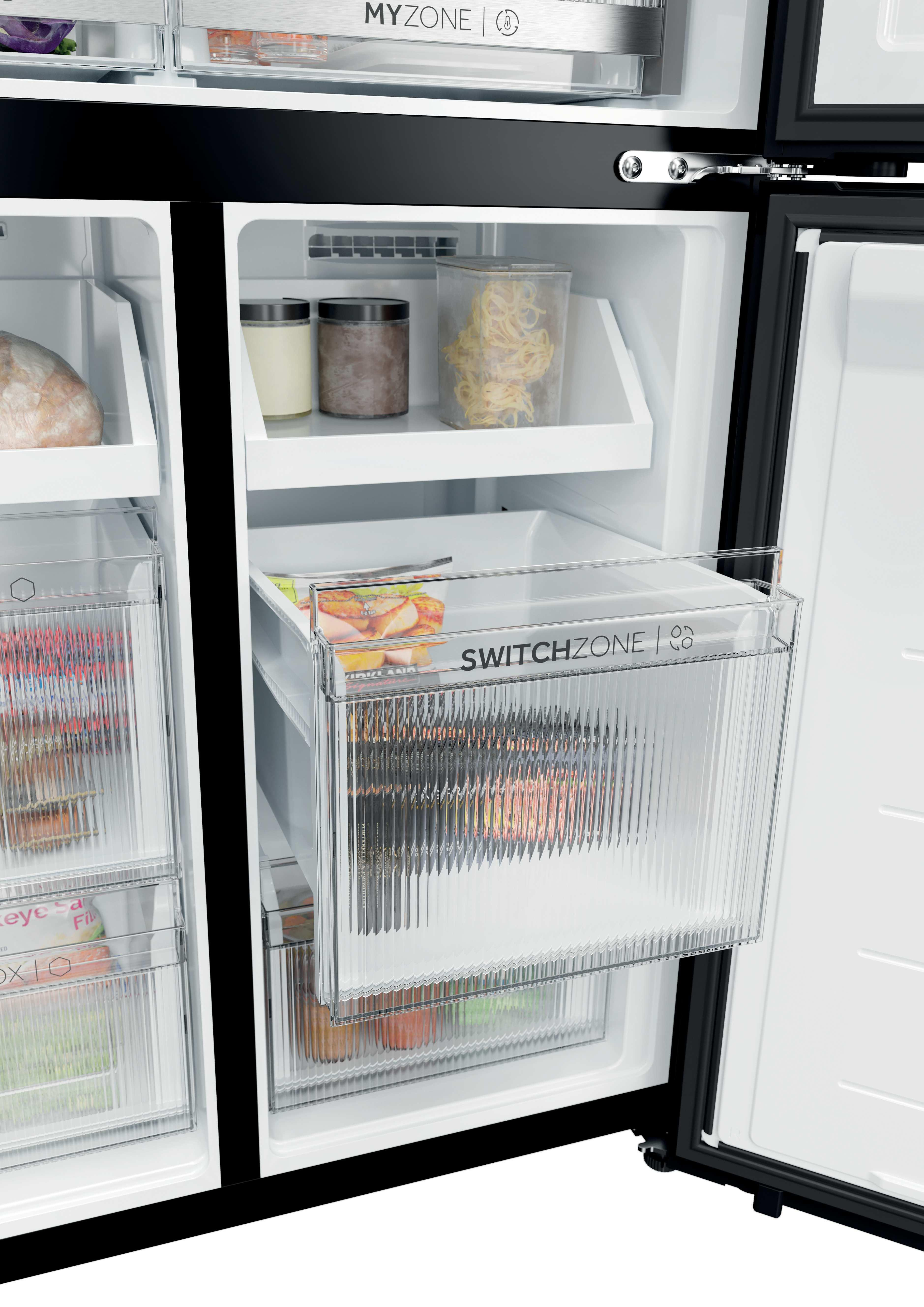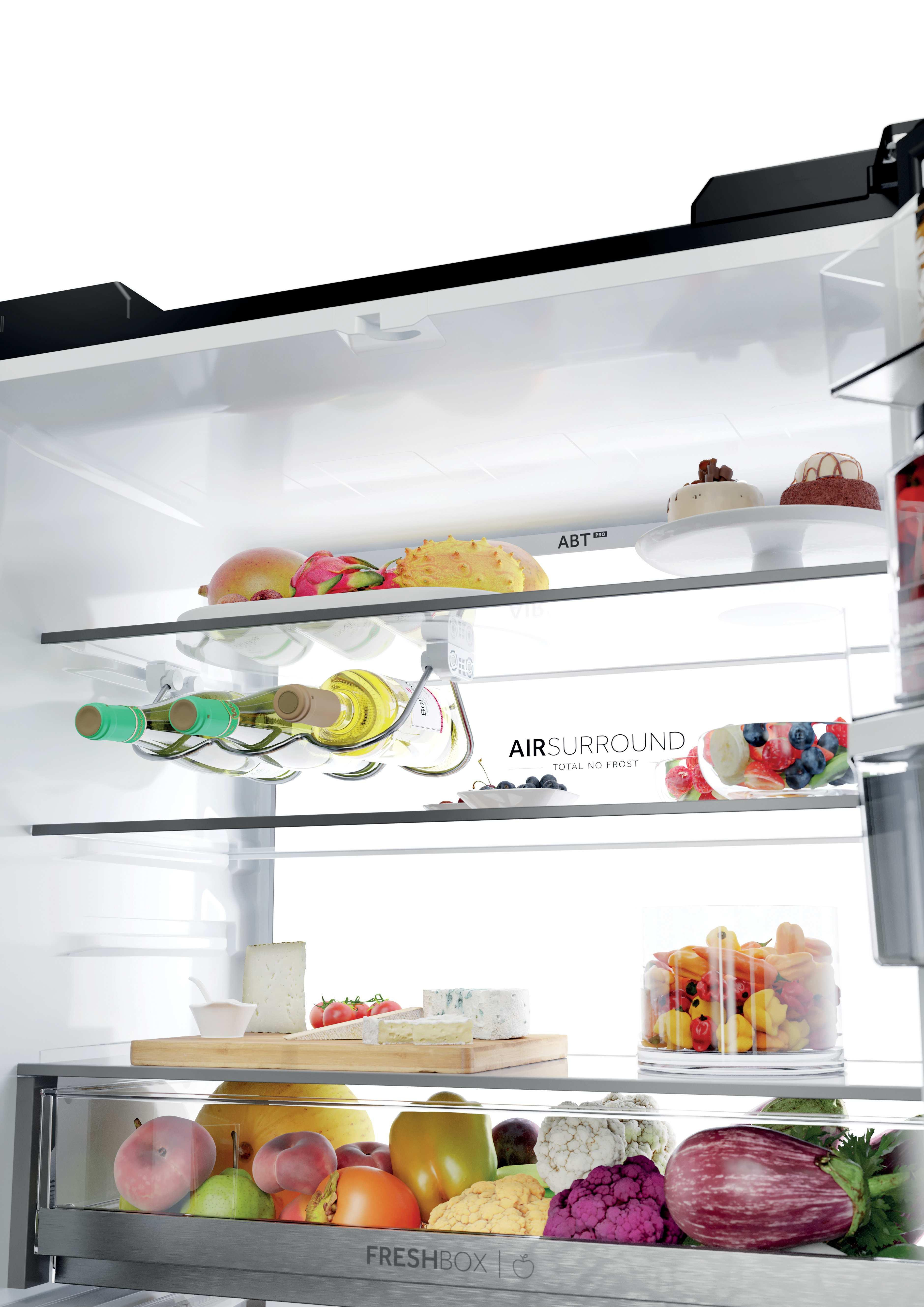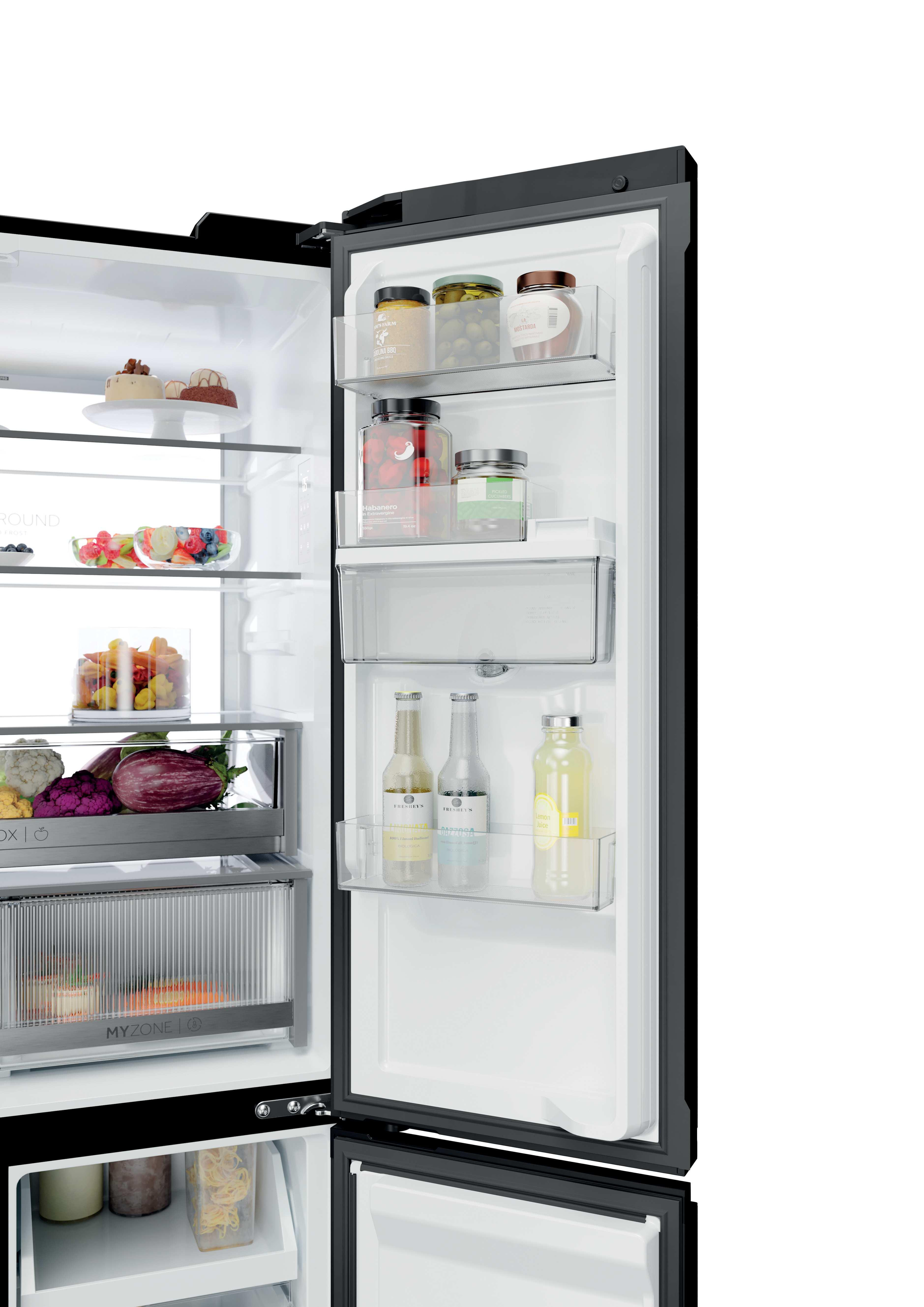 Haier HCKR7819DWGB. Capacità netta totale: 459 L, Classe climatica: SN-T, Emissione acustica: 36 dB. Capacità netta frigorifero: 298 L, No Frost (frigorifero), Sistema Multi-Airflow (frigorifero), Luce interna, Numero di ripiani frigorifero: 3. Capacità netta congelatore: 161 L, Capacità di congelamento: 11 kg/24h, No Frost (congelatore). Compartimento zona fresca. Classe efficienza energetica: D, Consumo energetico annuo: 238 kWh. Colore del prodotto: Nero