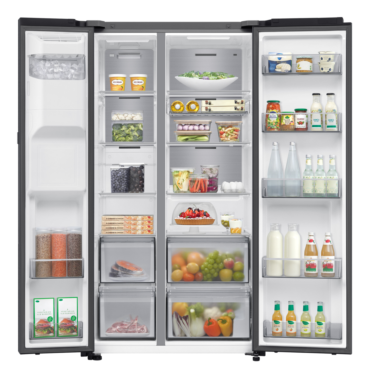 Samsung Series 9 Frigorifero Side By Side AI Home 621L RS90F64EDFEF. Posizionamento dell'apparecchio: Libera installazione, Design del prodotto: Porta americana, Colore del prodotto: Nero. Capacità netta totale: 621 L, Classe climatica: Starfish, Classe emissione rumore: C. Capacità netta frigorifero: 420 L, Variabile di temperatura frigo: 1 - 7 °C, Tipo di lampada: LED. Capacità netta congelatore: 220 L, Posizione del congelatore: Posizionato lateralmente, Capacità di congelamento: 13 kg/24h. Applicazioni per il controllo supportate: SmartThings