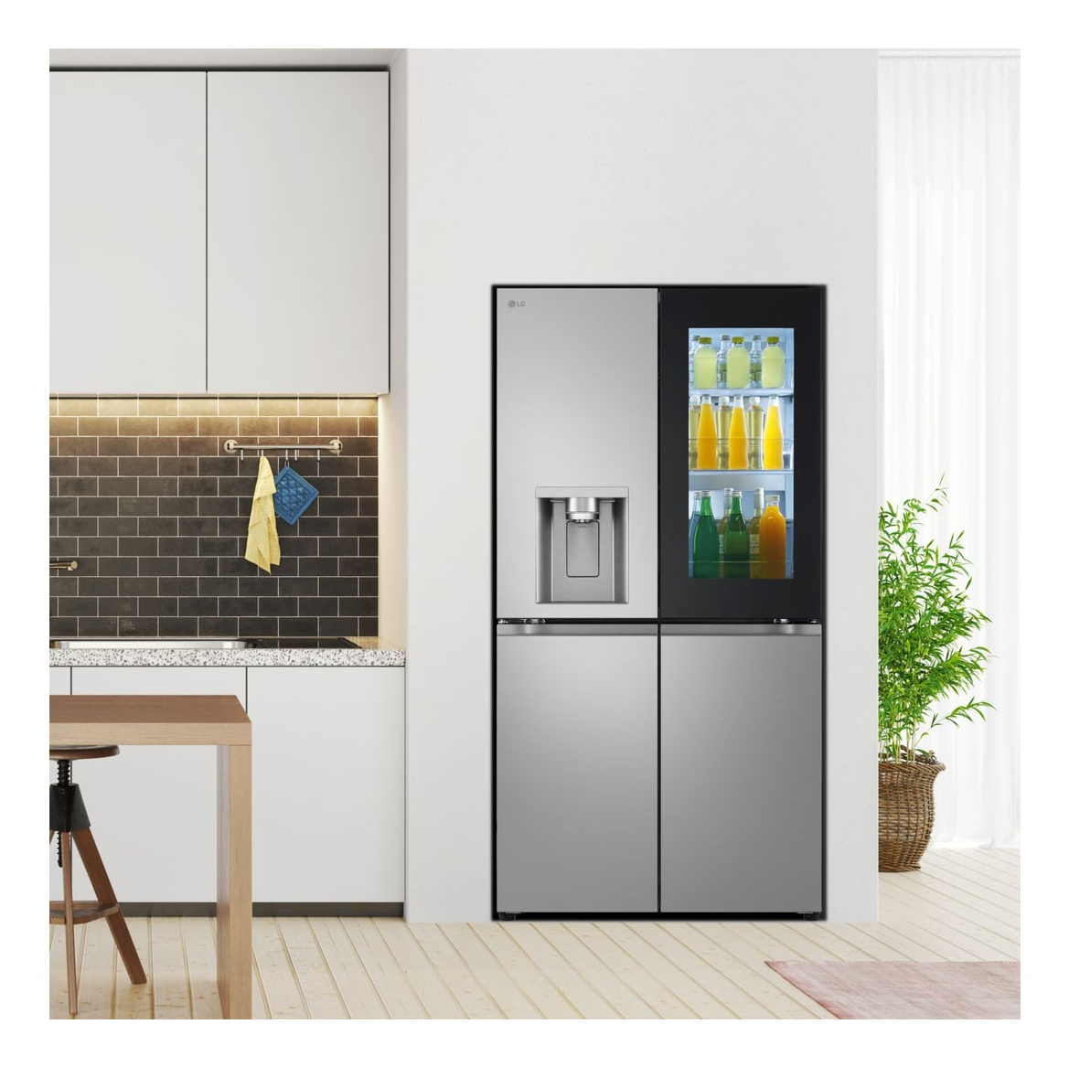 LG InstaView GMK961PY5E Frigorifero 4 porte | Classe E, 646L | Wi-Fi, Dispenser acqua senza allaccio, Door & Linear Cooling | Prime Argento