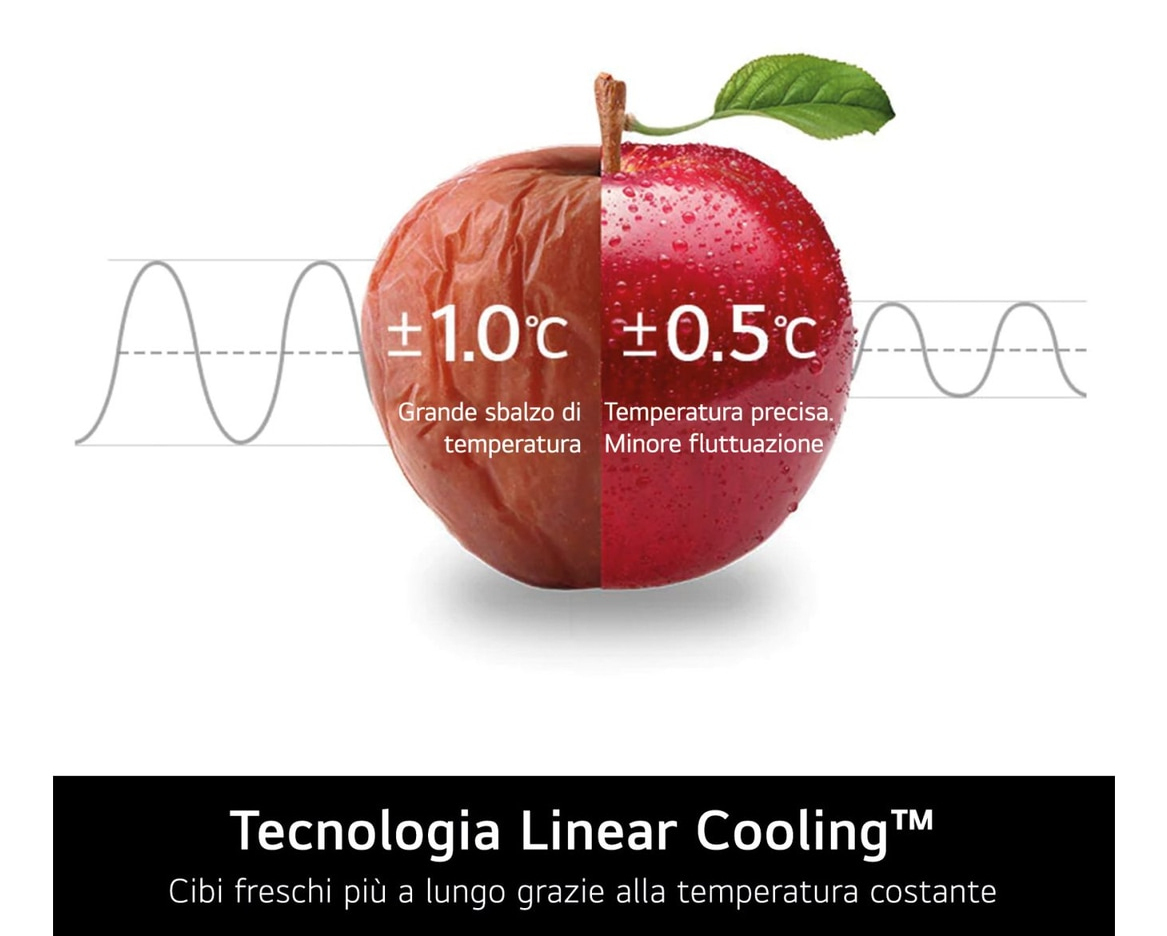 Attraverso un'analisi di quanto utilizzi il frigo nel corso di 3 settimane, la funzione Economic Care ti fa risparmiare energia nei periodi in cui lo utilizzi di meno. Nella modalità risparmio, infatti, il compressore funzionerà a una velocità inferiore per consumare di meno.