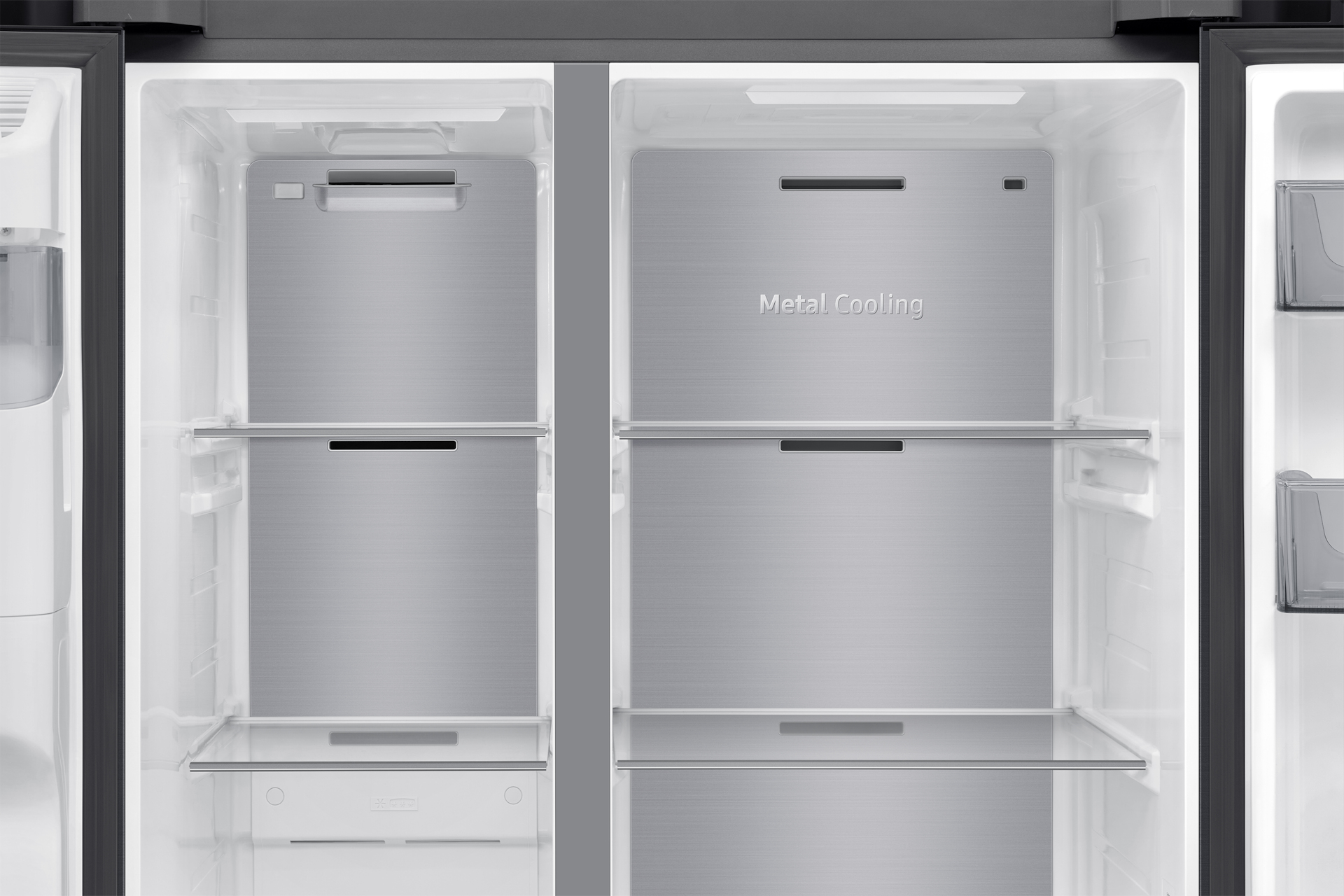 Mantieni sempre stabile la temperatura per preservare la freschezza dei cibi anche se la porta viene aperta di frequente. Il condotto Metal Cooling posizionato nella parete di fondo trattiene il freddo e compensa subito eventuali perdite di calore. Inoltre, è facile da pulire ed è anche esteticamente gradevole.