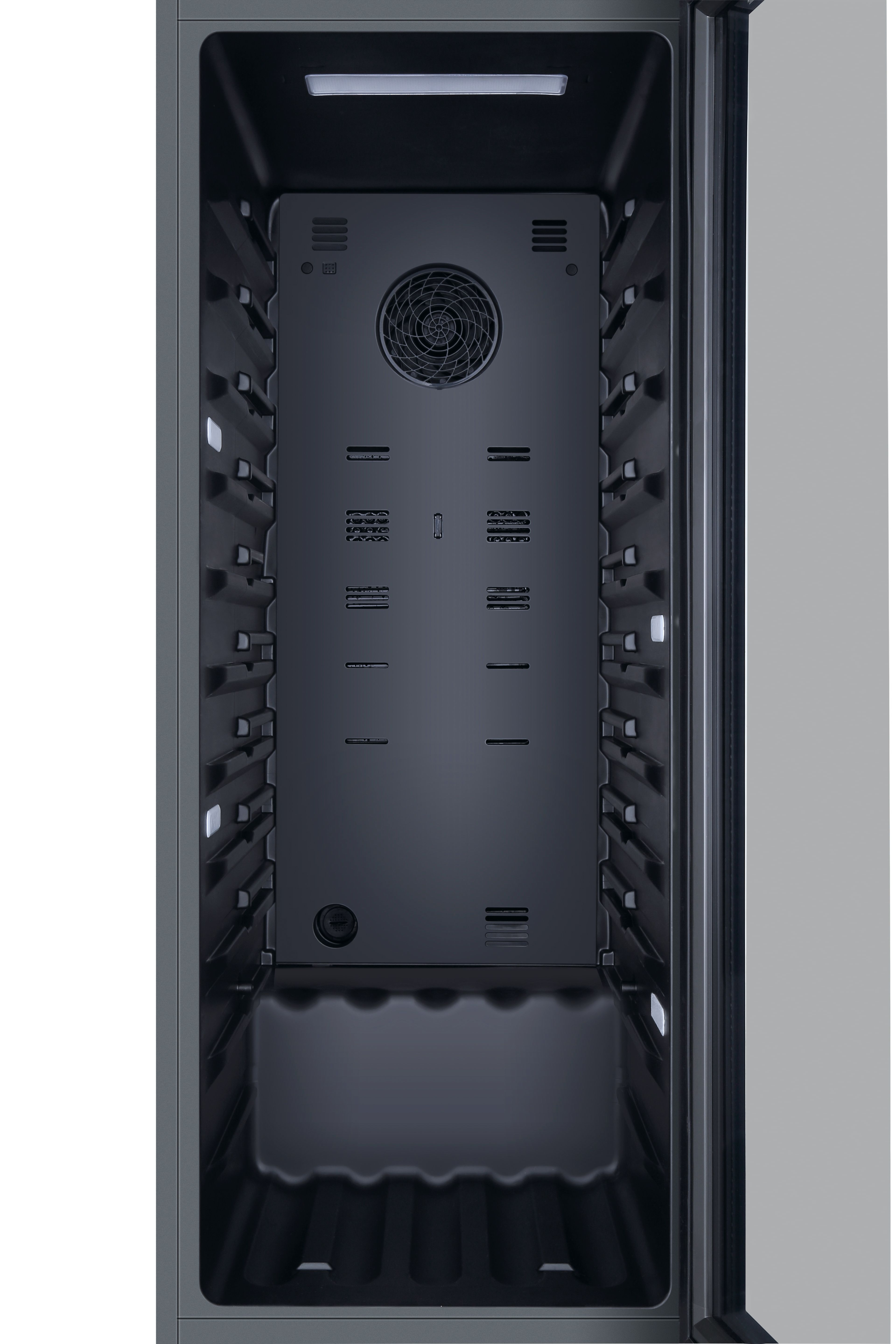 Il sistema antivibrazioni riduce al minimo oscillazioni esterne e rumorosità, assicurando un ambiente stabile e silenzioso che preserva l’integrità e la qualità del vino nel tempo.