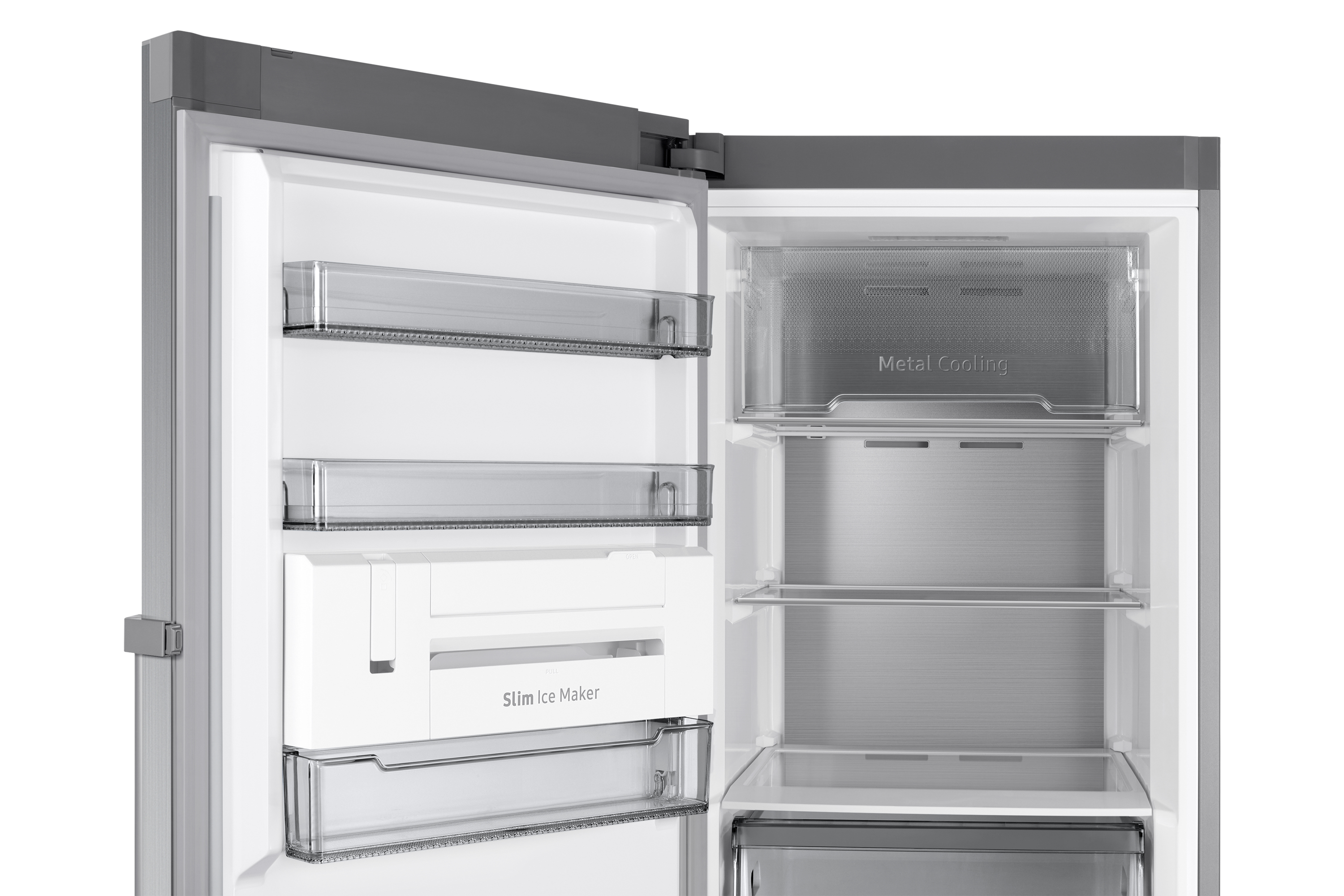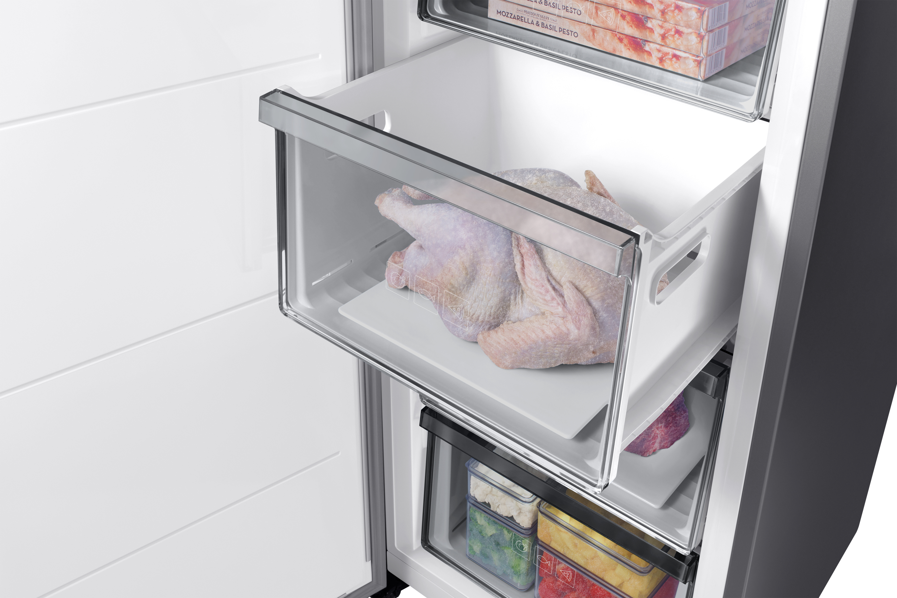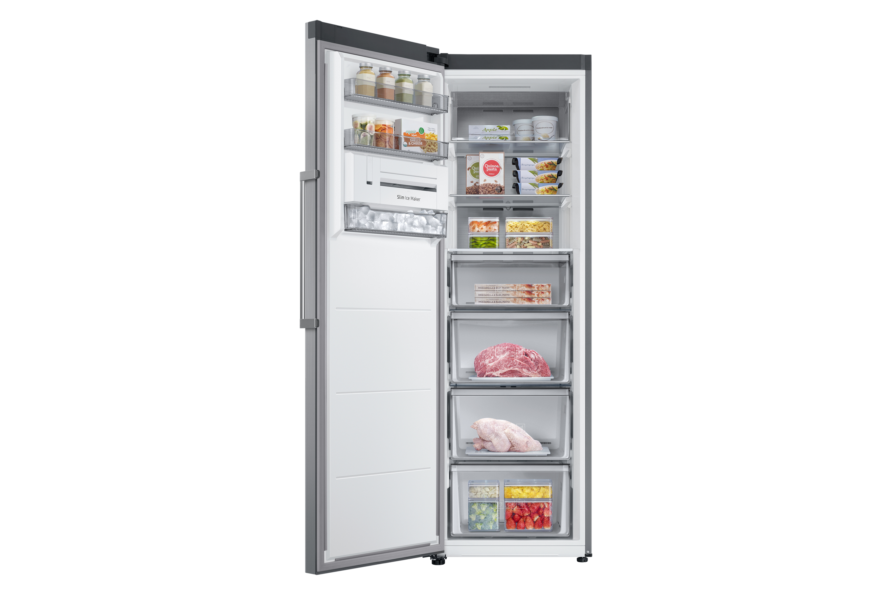 Samsung Freezer Monoporta Serie Twin 323L RZ32C7BBES9. Capacità netta congelatore: 323 L, Classe climatica: SN-T, Capacità di congelamento: 14,8 kg/24h, Emissione acustica: 36 dB, Punteggio: 4*, Sistema No-frost. Cerniera porta: Sinistra. Tipo di lampada: LED. Classe efficienza energetica: E, Consumo energetico annuo: 263 kWh. Colore del prodotto: Acciaio inox