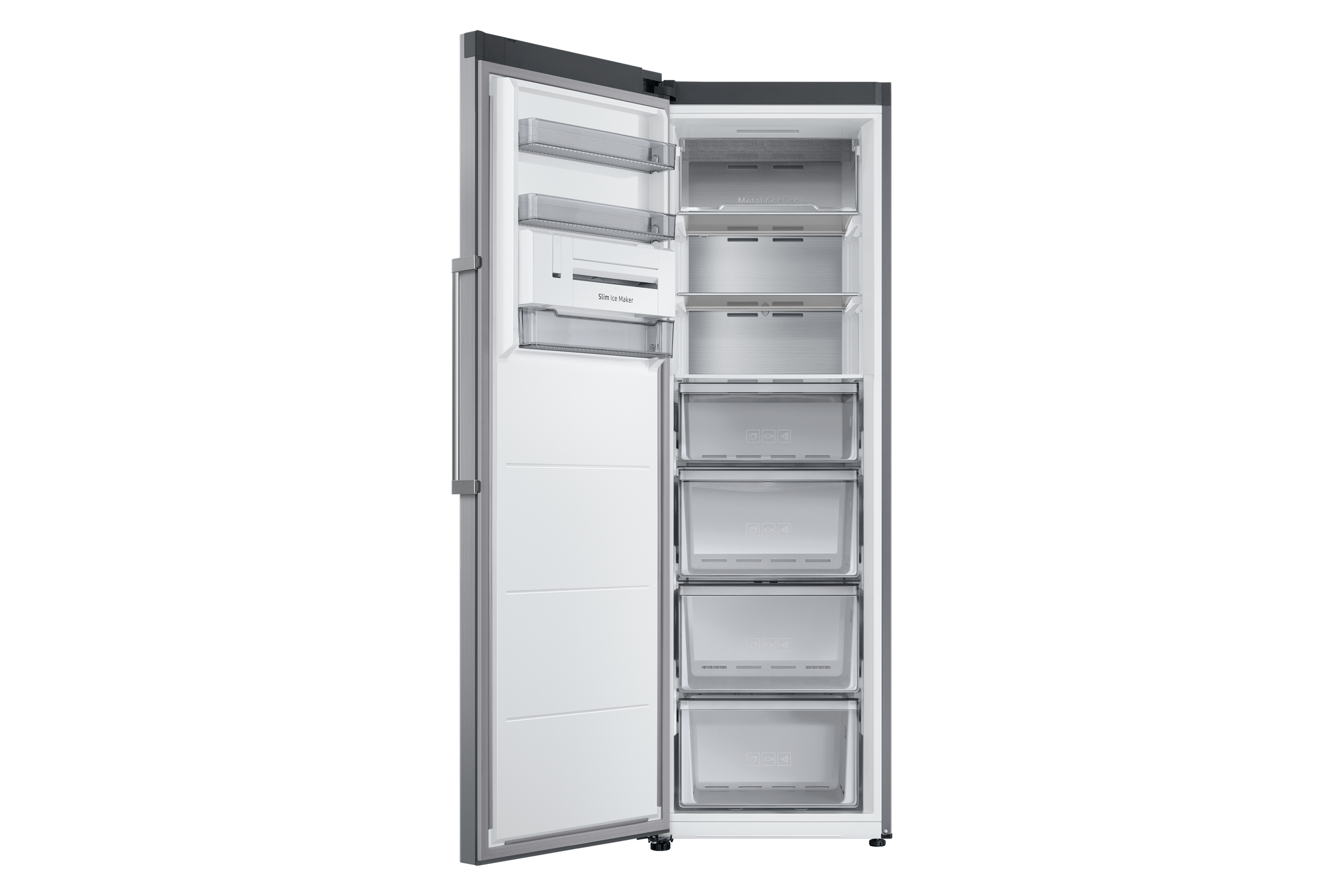 Samsung Freezer Monoporta Serie Twin 323L RZ32C7BBES9. Capacità netta congelatore: 323 L, Classe climatica: SN-T, Capacità di congelamento: 14,8 kg/24h, Emissione acustica: 36 dB, Punteggio: 4*, Sistema No-frost. Cerniera porta: Sinistra. Tipo di lampada: LED. Classe efficienza energetica: E, Consumo energetico annuo: 263 kWh. Colore del prodotto: Acciaio inox