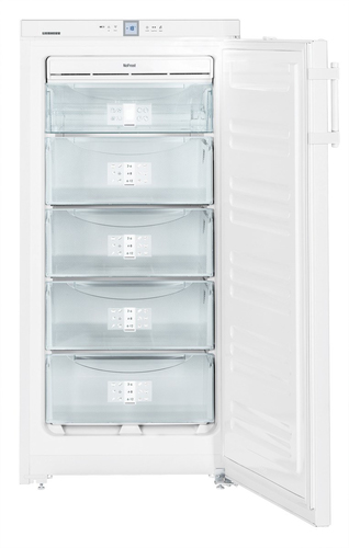 Liebherr GNP 1956 Premium NoFrost. Tipo: Verticale. Capacità netta congelatore: 149 L, Classe climatica: SN-T, Capacità di congelamento: 15 kg/24h, Autonomia senza energia elettrica: 14 h, Emissione acustica: 42 dB, Punteggio: 4*, Sistema No-frost. Cerniera porta: Destra. Tipo di lampada: LED. Classe efficienza energetica: A++, Consumo energetico annuo: 186 kWh. Colore del prodotto: Bianco