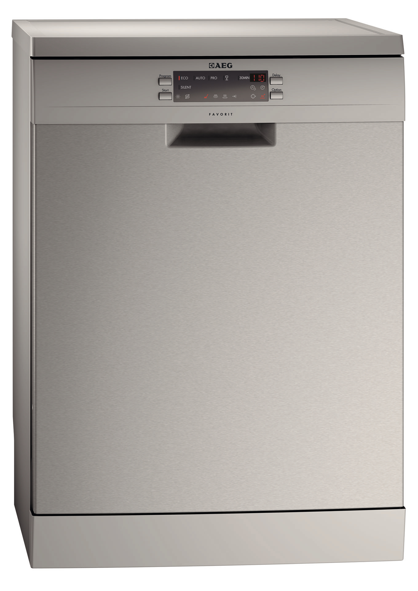 AEG F66702M0P. Posizionamento dell'apparecchio: Libera installazione, Colore della porta: Acciaio inossidabile, Colore pannello di controllo: Acciaio inossidabile. Numero di coperti: 15 coperti, Emissione acustica: 44 dB, Programmi speciali: Auto 45-70°C, Vetro/Delicati, Intensivo, Rapido. Consumo di acqua per ciclo: 11 L, Consumo di energia per ciclo: 0,961 kWh, Carico di collegamento: 2400 W. Larghezza: 596 mm, Profondità: 570 mm, Altezza: 850 mm. Classe efficacia di asciugatura: A, Consumo energetico annuo: 270 kWh, Consumo d'acqua totale annuo: 3080 L