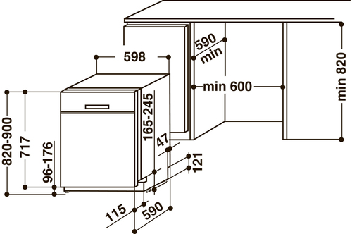 Whirlpool WUC 3C26 X. Posizionamento dell'apparecchio: Sottopiano, Dimensione: Dimensione massima (60 cm), Colore della porta: Acciaio inossidabile. Numero di coperti: 14 coperti, Emissione acustica: 46 dB, Programmi speciali: Economico, Intensivo, Prelavaggio, Rapido, Muto. Consumo di energia per ciclo: 0,93 kWh, Carico di collegamento: 1900 W, Consumi (modalità spento): 0,5 W. Larghezza: 600 mm, Profondità: 600 mm, Altezza: 820 mm. Classe efficacia di asciugatura: A, Consumo energetico annuo: 265 kWh, Consumo d'acqua totale annuo: 2520 L