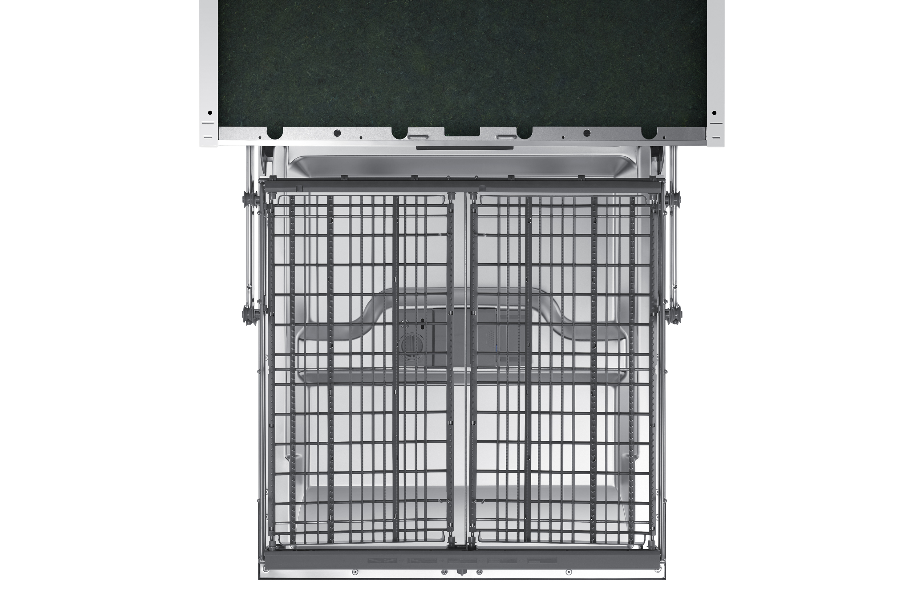 Lo spazio interno può essere configurato in maniera flessibile in altezza e consente di alzare o abbassare rapidamente e con un unico gesto il cestello superiore di 5 cm. Ricavando più posto nel cestello inferiore è possibile caricare piatti di varie forme e dimensioni, incluse pentole, piatti da portata e di grandi dimensioni.
