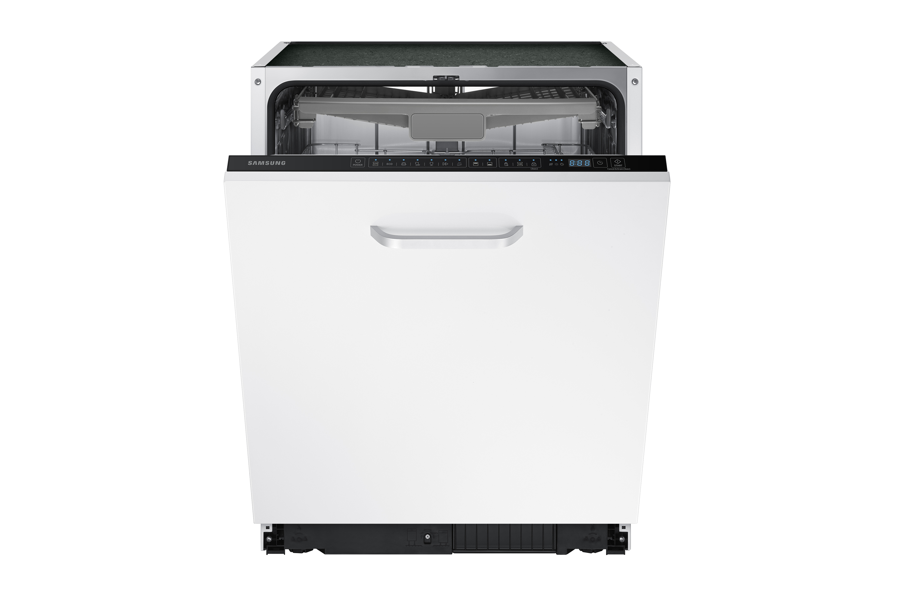 Grazie alle cerniere sliding potrai montare questa lavastoviglie in qualunque cucina, anche in quelle con zoccolo molto basso.
