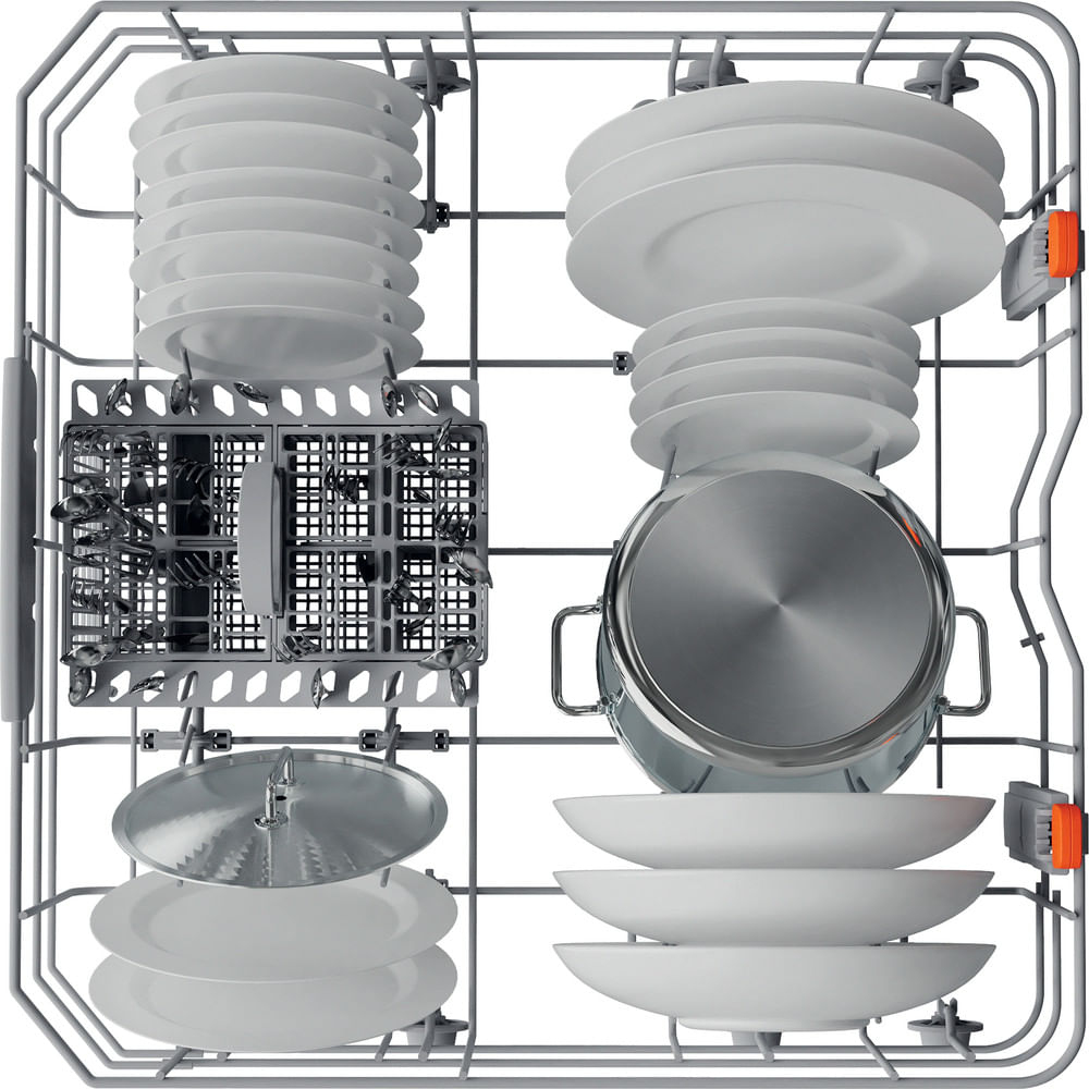 La nuova lavastoviglie permette massima flessibilità di carico con 13, 14 e 15 coperti. Ogni configurazione è equipaggiata con elementi mobili per un'efficiente disposizione dei tuoi piatti. La colorazione delle parti di regolazione rende ancora più immediato l’utilizzo.