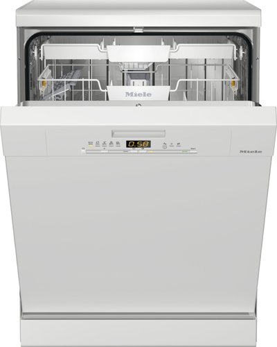 Miele G 5000 SC Active. Posizionamento dell'apparecchio: Libera installazione, Dimensione: Dimensione massima (60 cm), Colore della porta: Bianco. Numero di coperti: 14 coperti, Emissione acustica: 45 dB, Classe efficacia di asciugatura: A. Classe efficienza energetica: A++, Consumo di energia per ciclo: 0,94 kWh, Consumo di acqua per ciclo: 8,9 L. Larghezza: 598 mm, Profondità: 600 mm, Altezza: 845 mm