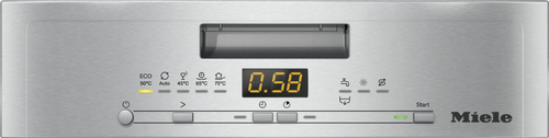 Miele G 5430 SCU SL Active. Posizionamento dell'apparecchio: Sottopiano, Dimensione: Compatta (45 cm), Colore della porta: Acciaio inossidabile. Numero di coperti: 9 coperti, Classe emissione rumore: C, Emissione acustica: 45 dB. Classe efficienza energetica: F, Consumo di acqua per ciclo: 8 L, Consumo energetico per 100 cicli: 78 kWh. Larghezza: 448 mm, Profondità: 570 mm, Altezza: 805 mm