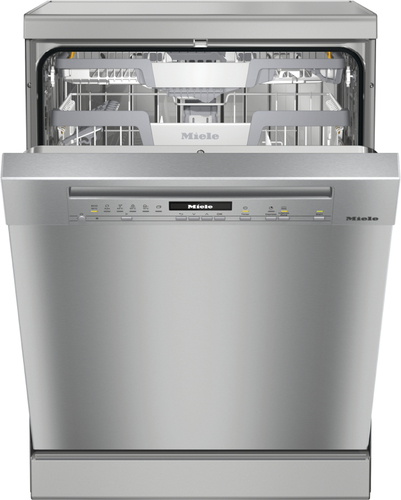 Miele G 7200 SC. Posizionamento dell'apparecchio: Libera installazione, Dimensione: Dimensione massima (60 cm), Colore della porta: Acciaio inossidabile. Numero di coperti: 14 coperti, Classe emissione rumore: B, Emissione acustica: 43 dB. Classe efficienza energetica: A, Consumo di acqua per ciclo: 8,4 L, Consumo energetico per 100 cicli: 54 kWh. Larghezza: 598 mm, Profondità: 600 mm, Altezza: 845 mm