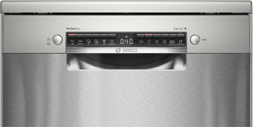 Bosch Serie 6 SMS6YCI00E. Posizionamento dell'apparecchio: Libera installazione, Dimensione: Dimensione massima (60 cm), Colore della porta: Acciaio inox. Numero di coperti: 14 coperti, Classe emissione rumore: B, Emissione acustica: 43 dB. Regolazione piedini: 2 cm, Applicazioni per il controllo supportate: Bosch Home Connect. Classe efficienza energetica: B, Consumo di acqua per ciclo: 9,5 L, Consumo energetico per 100 cicli: 65 kWh. Larghezza: 600 mm, Profondità: 600 mm, Altezza: 845 mm