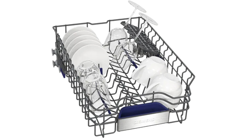 Siemens SR25YI04ME. Posizionamento dell'apparecchio: Libera installazione, Dimensione: Compatta (45 cm), Colore della porta: Acciaio inox. Numero di coperti: 10 coperti, Classe emissione rumore: B, Emissione acustica: 43 dB. Regolazione piedini: 2 cm. Classe efficienza energetica: B, Consumo di acqua per ciclo: 8,5 L, Consumo energetico per 100 cicli: 51 kWh. Larghezza: 450 mm, Profondità: 600 mm, Altezza: 845 mm