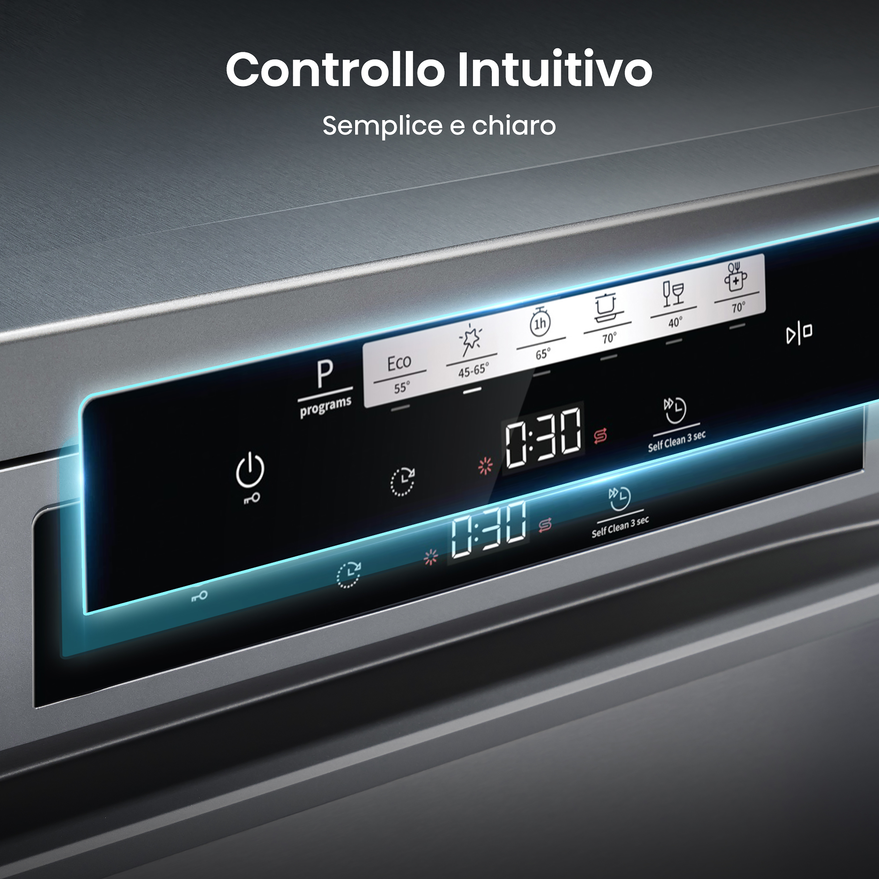Impostazioni intuitive e facili da utilizzare. Far funzionare la lavastoviglie è semplice ed ergonomico.