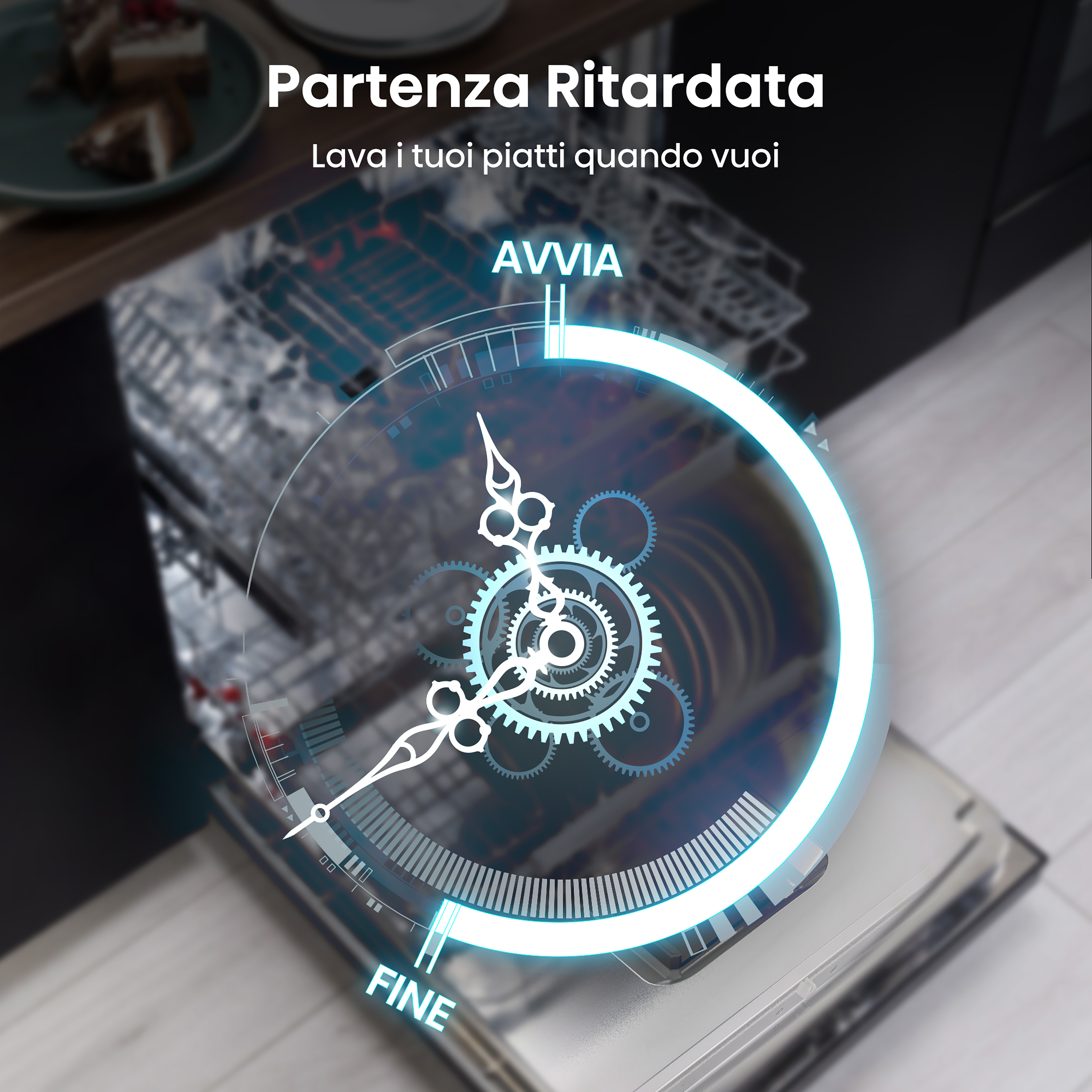 Questa funzione è semplice ma incredibilmente utile, permettendoti di far partire la lavastoviglie in un secondo momento.