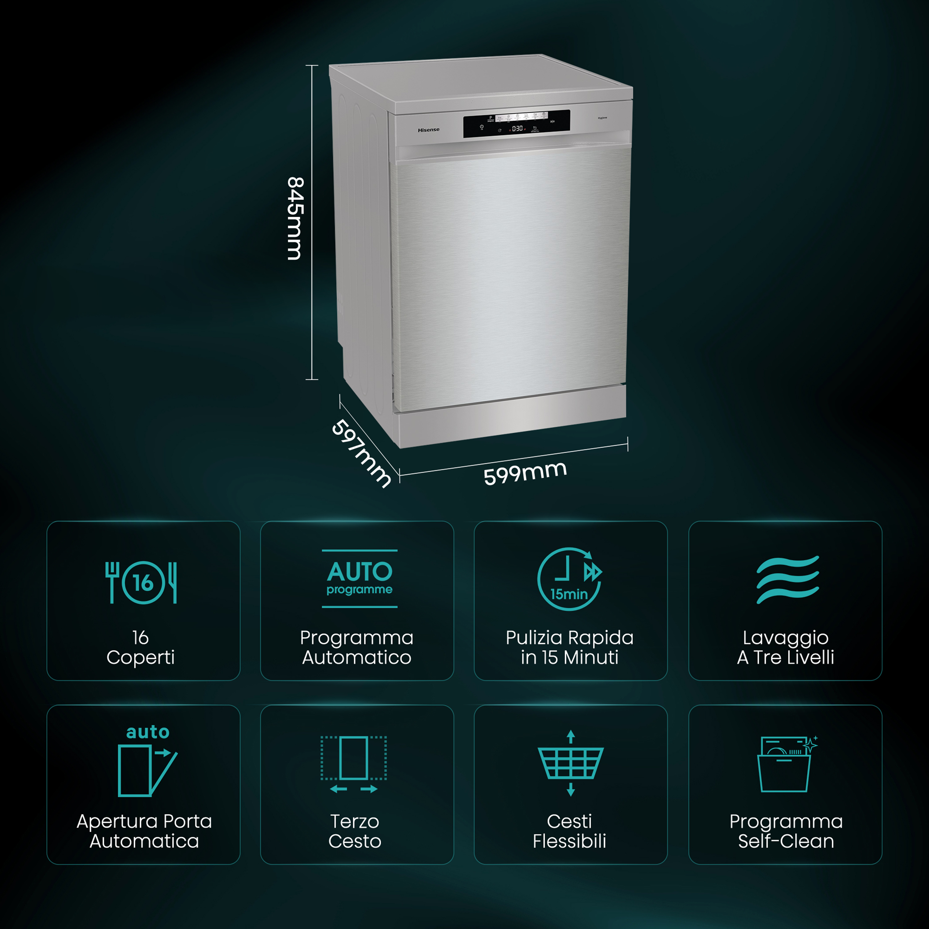 Hisense Dishwasher Libera installazione 16 coperti
