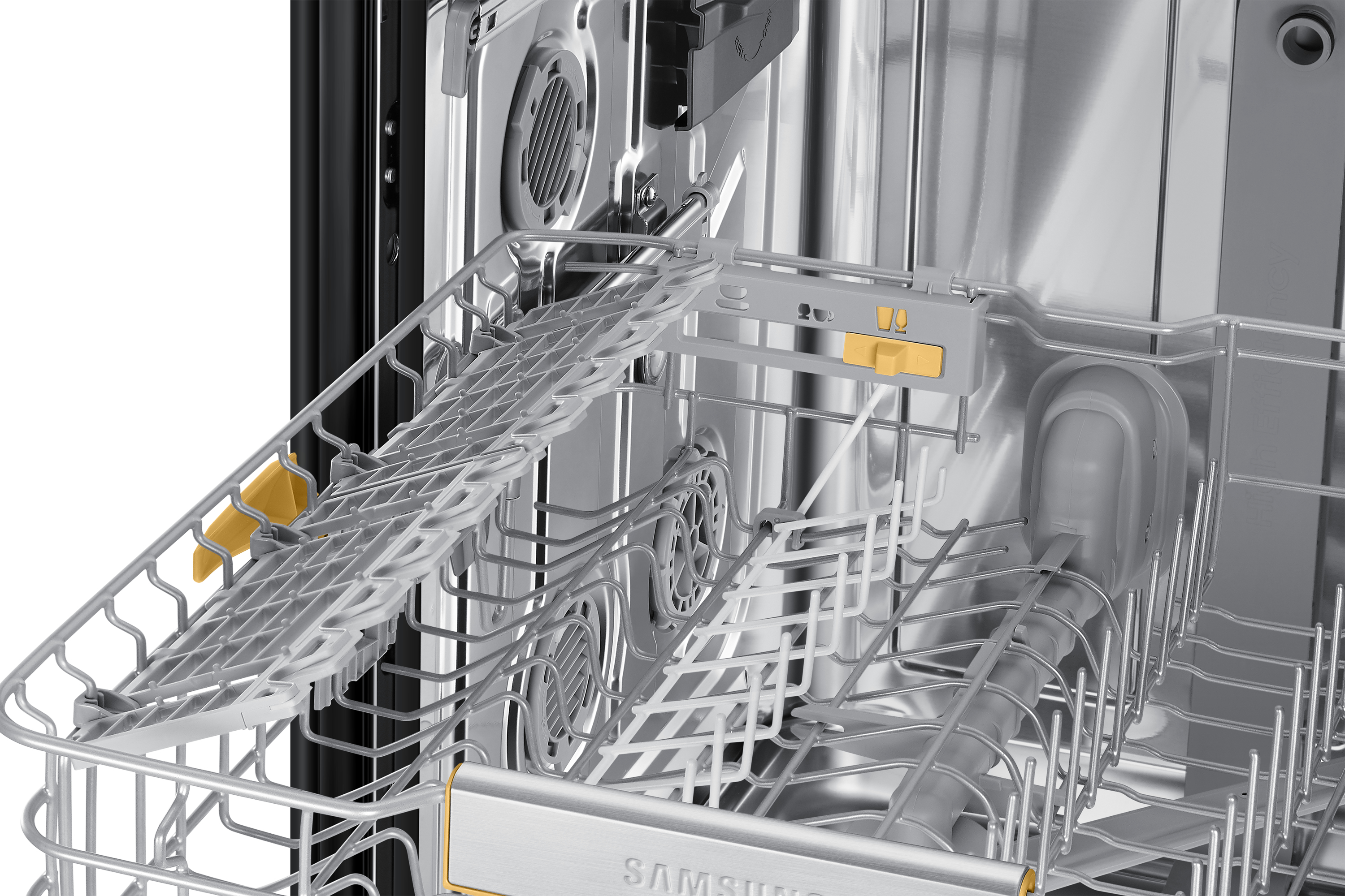Al termine del risciacquo e dellasciugatura, la porta si apre automaticamente di 10 cm per permettere al vapore di fuoriuscire. Il sistema Dry Care è composto da due ventole che massimizzano la circolazione dellaria durante lasciugatura. La lavastoviglie quindi asciuga in modo più efficace rispetto ai metodi convenzionali, specialmente per quanto riguarda gli utensili in plastica e quelli più piccoli, risparmiando energia.