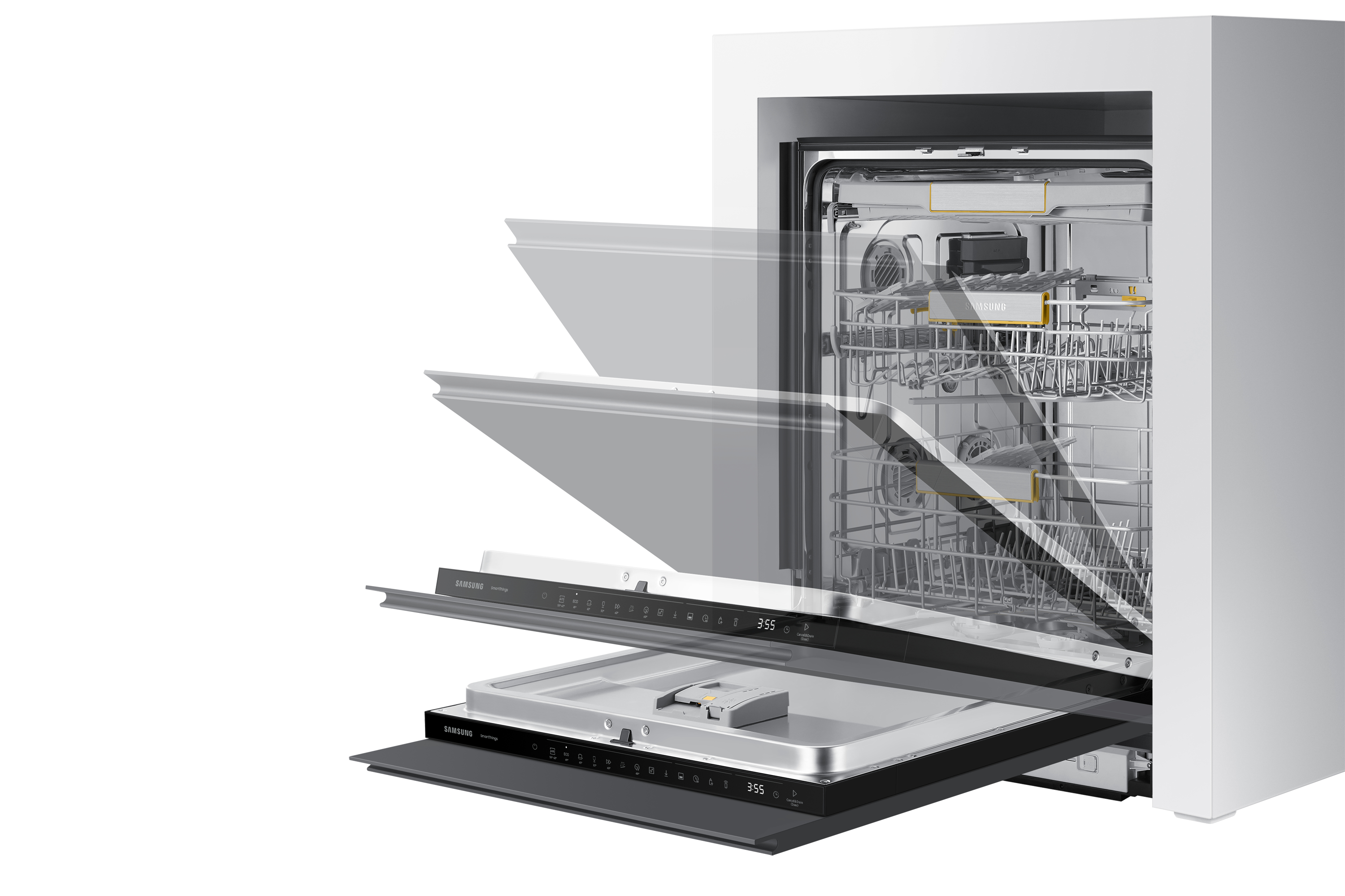 Prendersi cura della lavastoviglie è più facile che mai. SmartThings Home Care[13] monitora e analizza i consumi, aiutandoti nella diagnosi e risoluzione dei problemi. Inoltre, il sistema ti indica automaticamente quando è il momento di sostituire sale o brillantante, e ha in dotazione una guida per l'utilizzo con suggerimenti utili e un manuale utente.