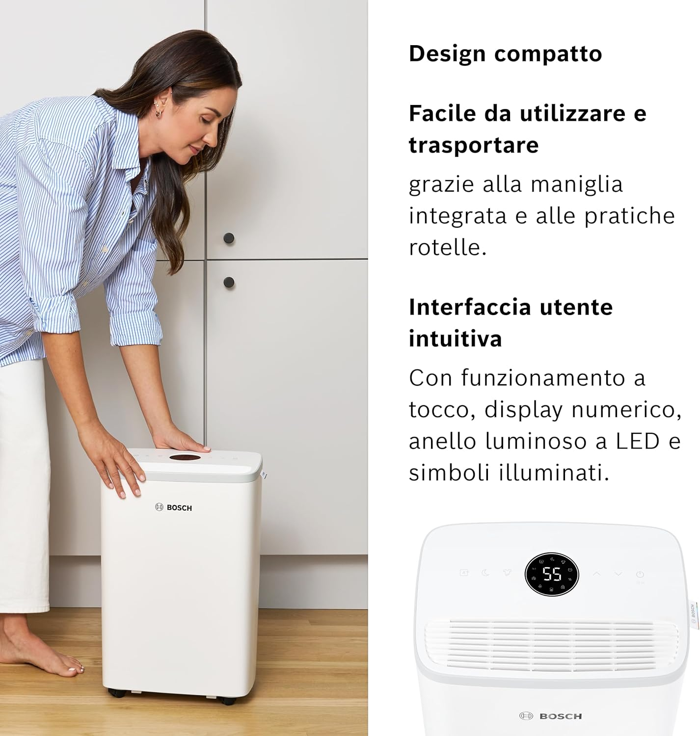 - Gestione semplice grazie al display LED touch intuitivo e icone illuminate