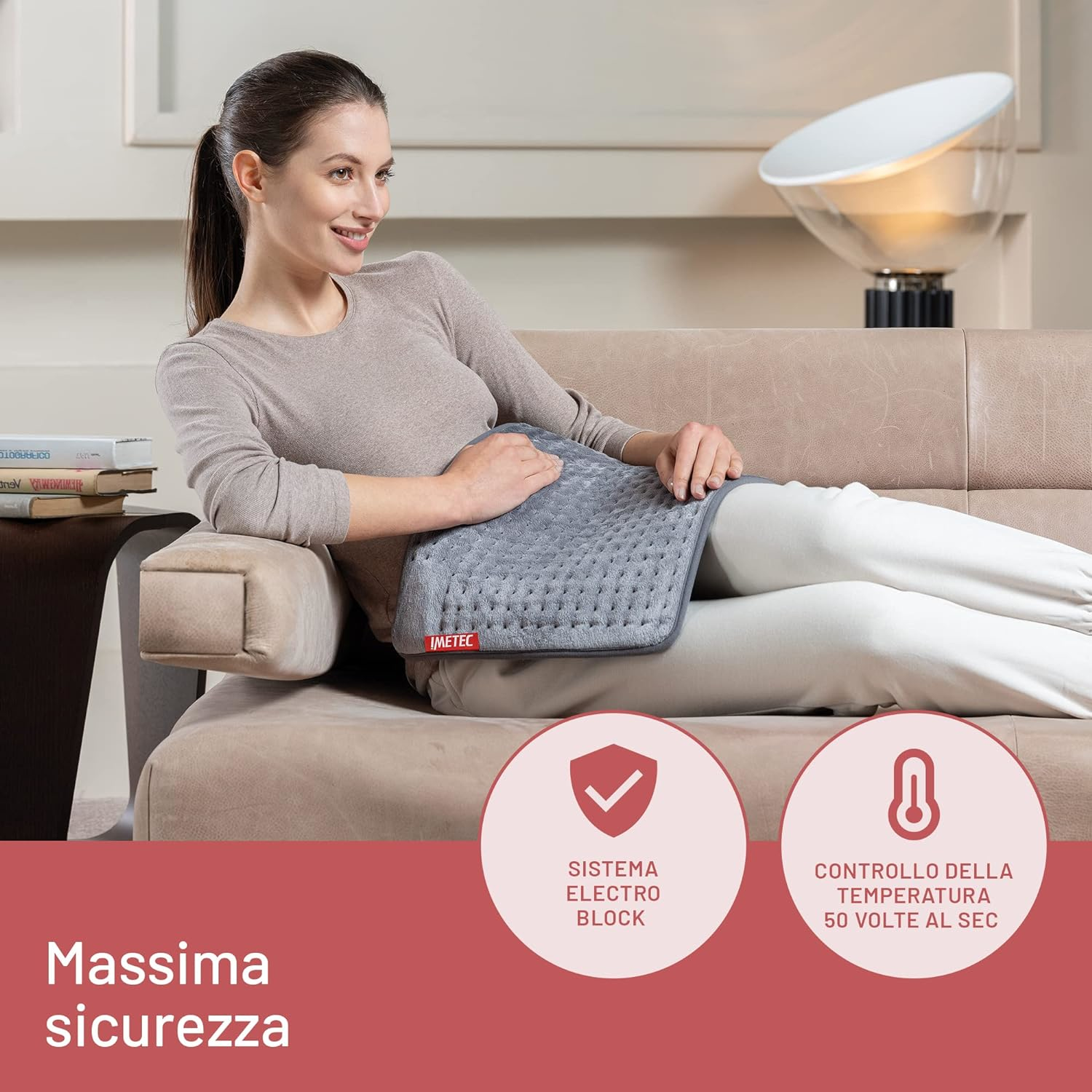Imetec Intellisense Comfort, Termoforo multiuso, Cuscino termico, Per schiena e addome, Tasca per mani, Rapido riscaldamento, Tessuto anallergico, 5 temperature, Electro block di sicurezza, Lavabile