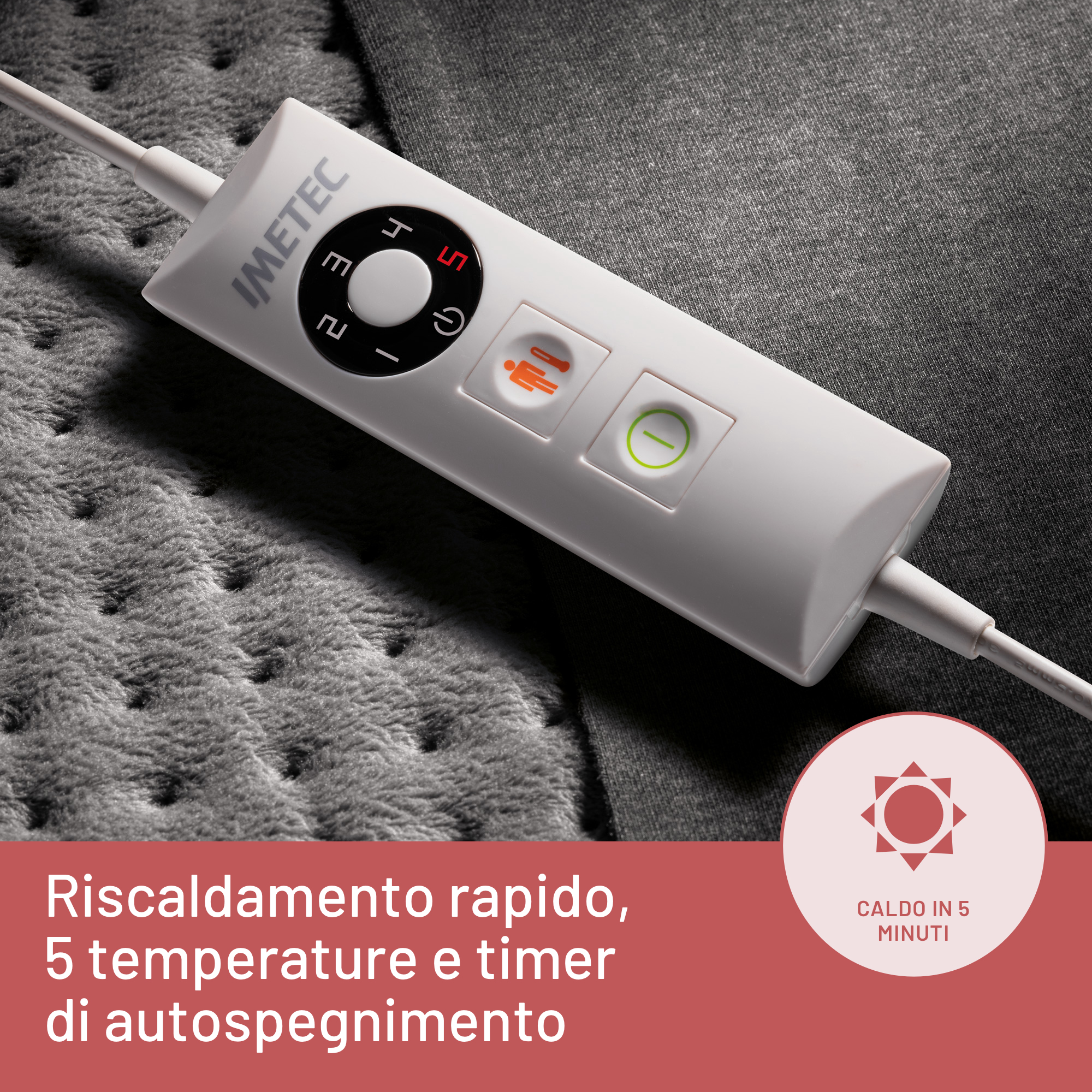 Imetec Intellisense Comfort, Termoforo multiuso, Cuscino termico, Per schiena e addome, Tasca per mani, Rapido riscaldamento, Tessuto anallergico, 5 temperature, Electro block di sicurezza, Lavabile. Dimensione del cuscinetto riscaldante: 40 x 35 cm, Potenza: 110 W, Colore del prodotto: Grigio. Larghezza: 400 mm, Profondità: 350 mm, Altezza: 10 mm. Tipologia alimentazione: AC, Tensione di ingresso AC: 220 - 240 V, Frequenza di ingresso AC: 50 - 60 Hz