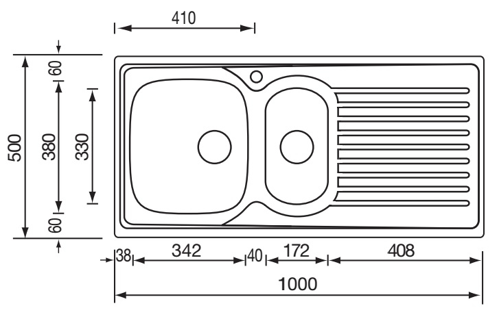 | Dimensioni prima vasca (LxL) | 342 x 380 mm |