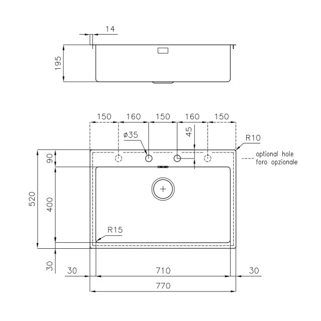 VASCA KE 71X40 TPR FT BR INOX - 2266050