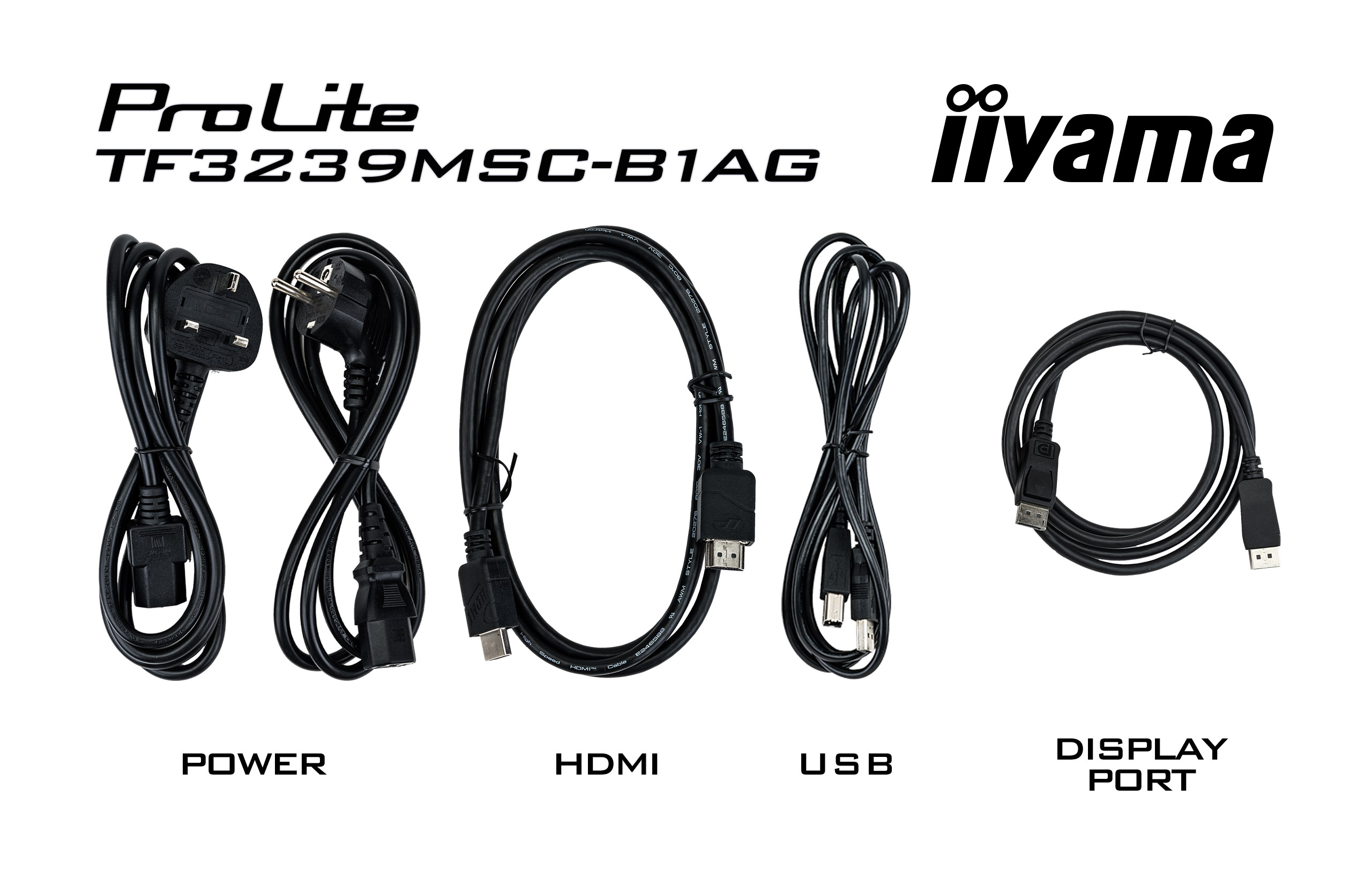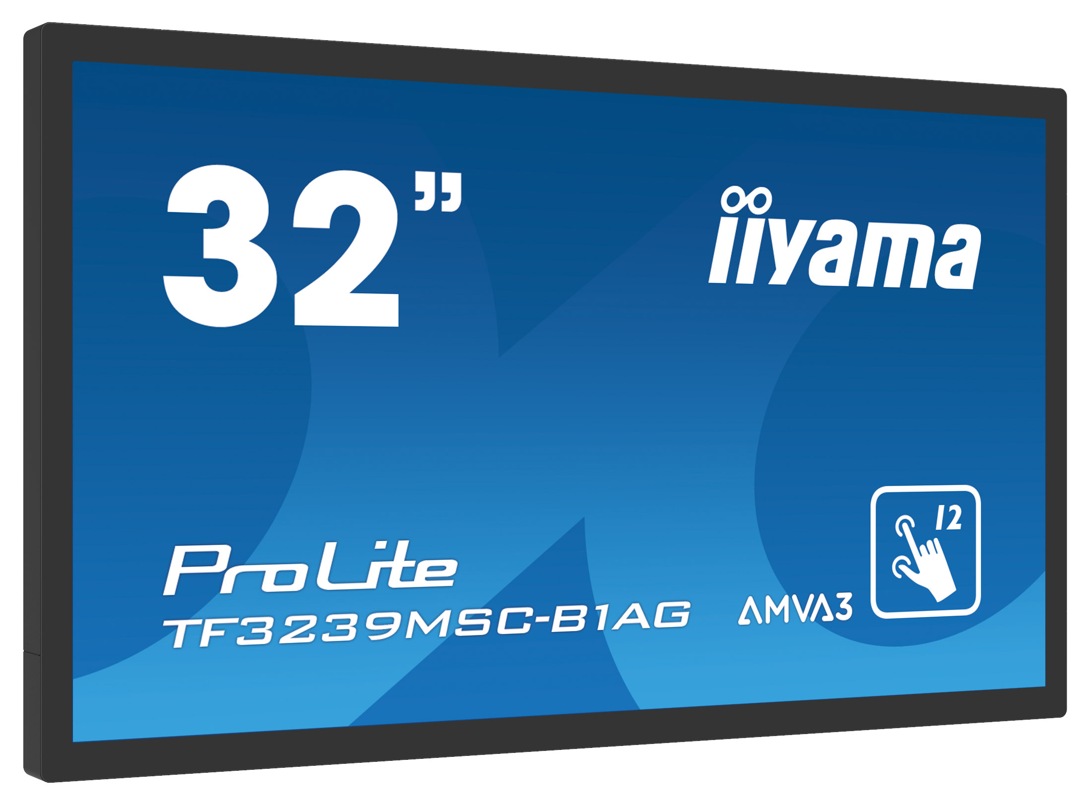 iiyama ProLite TF3239MSC-B1AG. Dimensioni schermo: 80 cm (31.5"), Luminosità schermo: 500 cd/m², Tipologia HD: Full HD. Colore del prodotto: Nero, Materiale della scocca: Metallo, Spessore del vetro: 2 mm. Tecnologia touch: Multi-touch, tecnologia touchscreen: Sistema capacitivo progressivo, Tipologia touch screen: Multi utente. Panel mounting interface 24/5000 Interfaccia per montaggio a pannello: 400 x 200 mm. Classe di efficienza energetica (SDR): G, Consumo di energia (SDR) per 1000 ore: 55 kWh, Tipo alimentazione: AC