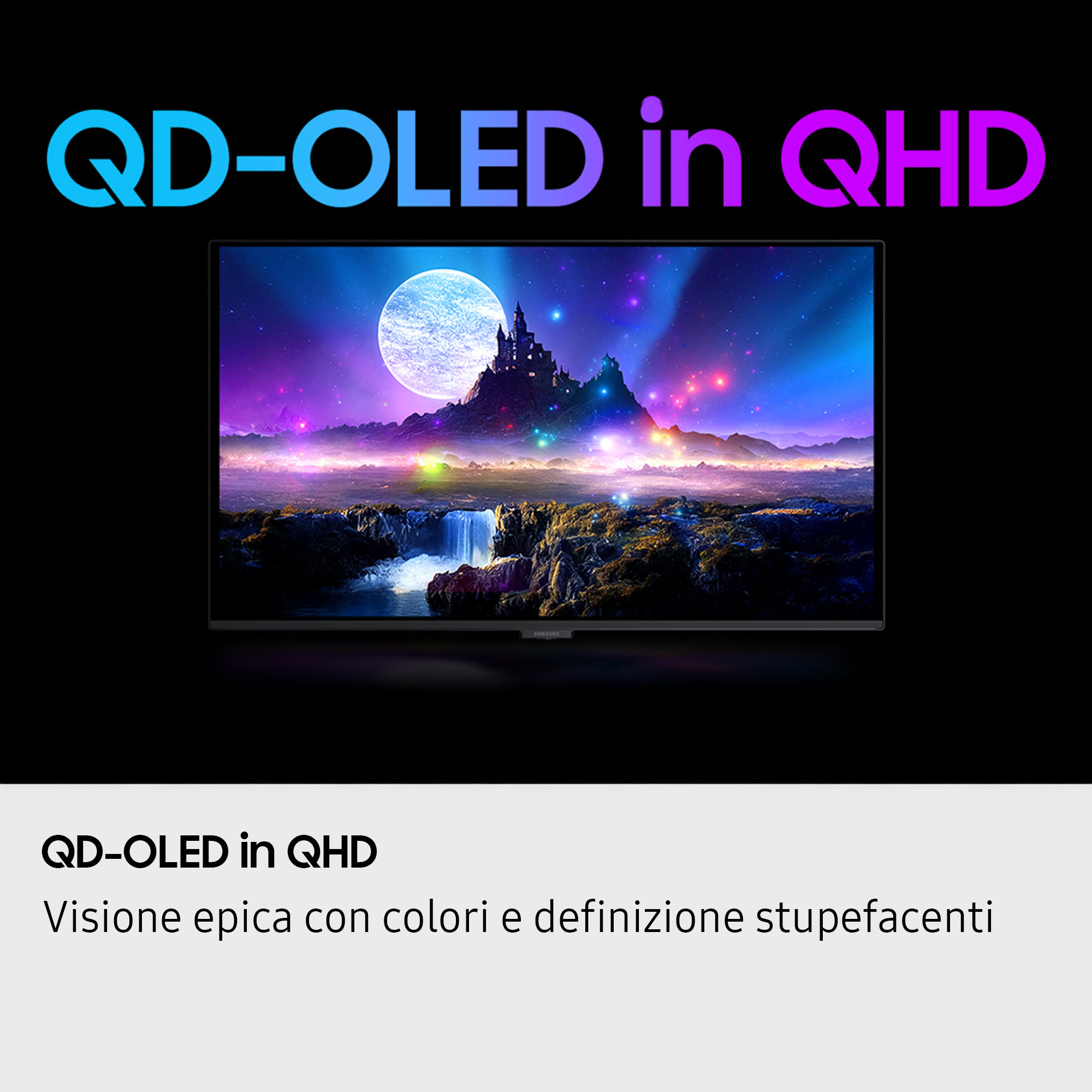 Samsung Monitor Gaming Odyssey OLED G5 - G50SF da 27" QHD Flat. Dimensioni diagonale schermo: 68,6 cm (27"), Risoluzione del display: 2560 x 1440 Pixel, Tipologia HD: Quad HD, Tecnologia display: OLED, Tempo di risposta: 0,03 ms, Rapporto d'aspetto nativo: 16:9, Angolo di visualizzazione (orizzontale): 178°, Angolo di visualizzazione (verticale): 178°. Montaggio standard VESA. Colore del prodotto: Nero