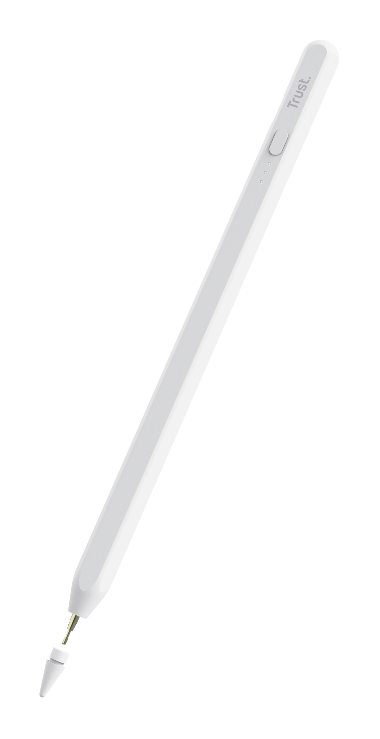 Trust Kyna. Compatibilità dispositivo: Tablet, Compatibilità marca: Apple, Colore del prodotto: Bianco. Peso: 13 g. Quantità per pacco: 1 pz, Larghezza imballo: 97 mm, Profondità imballo: 97 mm. Contenuto della confezione: Penna capacitiva Cavo di ricarica 2 spinotti aggiuntivi Guida per l'utente