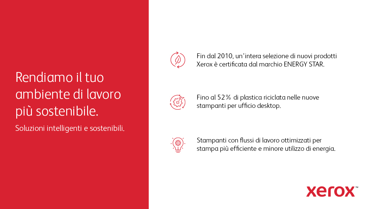 Stampanti progettate per l’efficienza energetica e contenenti plastica riciclata.