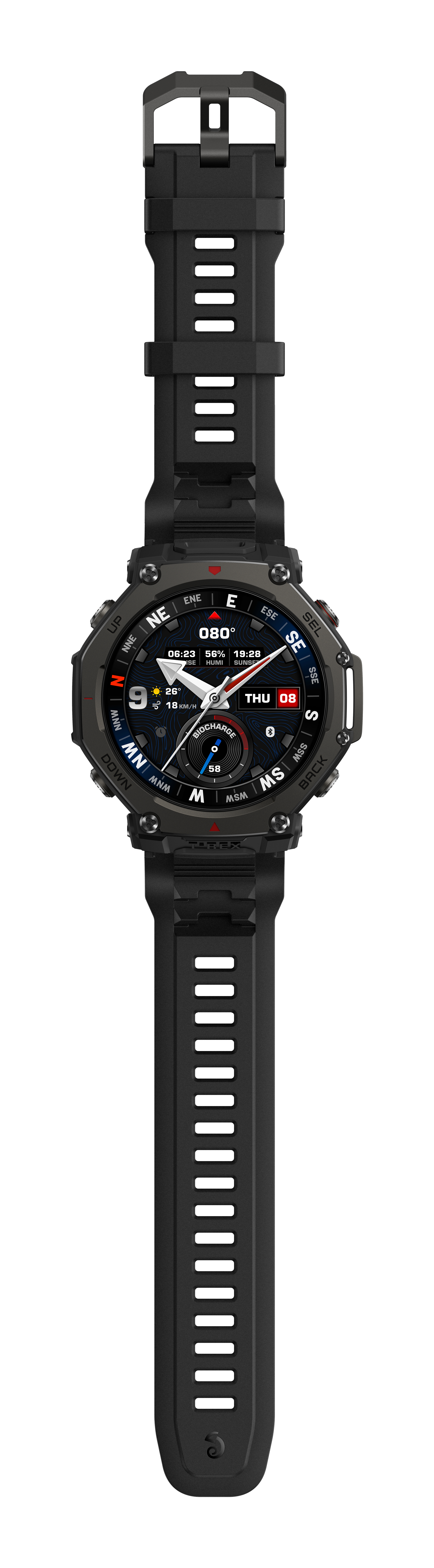 Amazfit T-Rex 3 Pro. Dimensioni diagonale schermo: 3,81 cm (1.5"), Tecnologia display: AMOLED, Risoluzione del display: 480 x 480 Pixel, Touch screen. Wi-Fi. GPS (satellitare). Capacità della batteria: 700 mAh. Peso: 52 g. Impermeabile fino a: 45 m, Materiale cinturino: Silicone, Colore cinturino: Nero