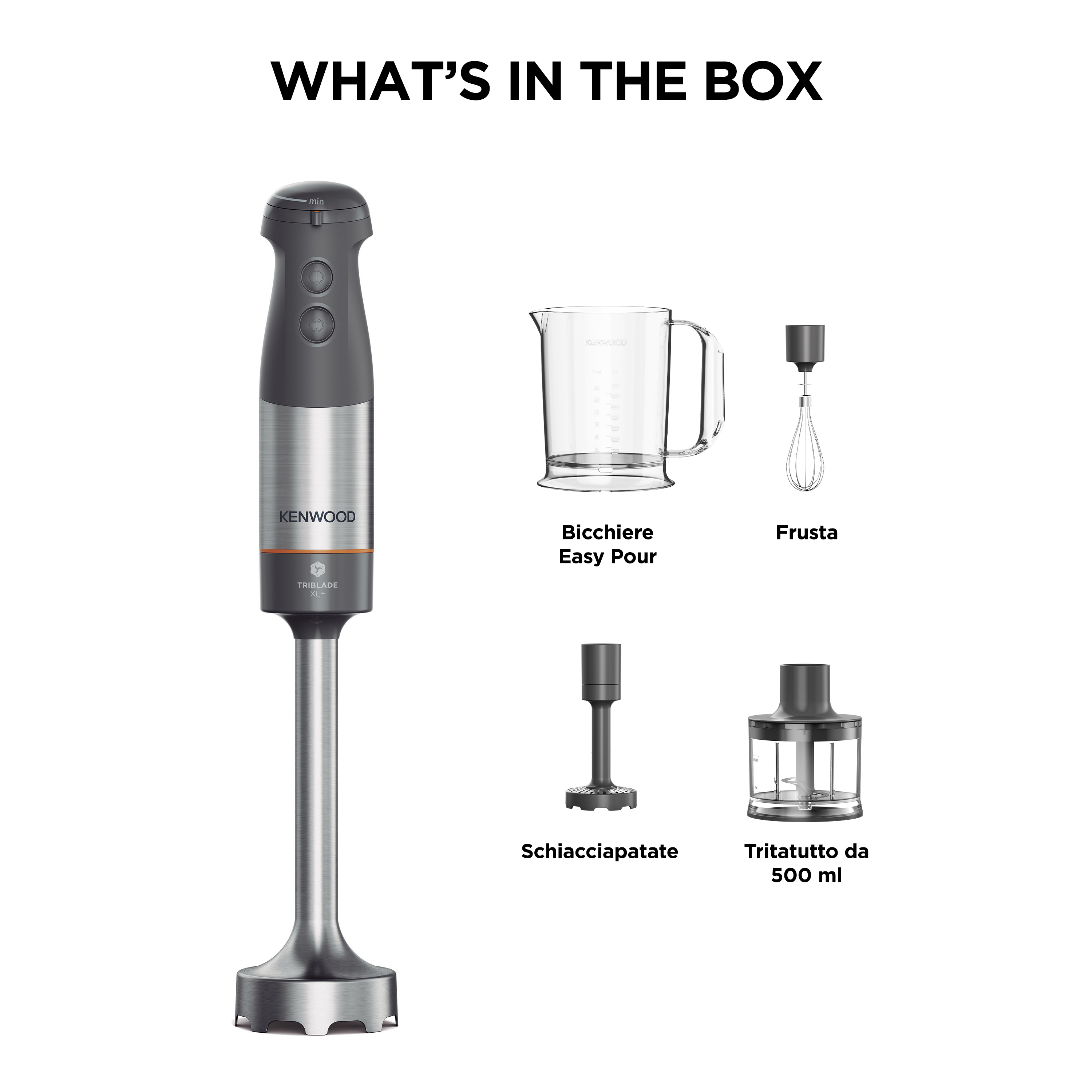 Kenwood Triblade XL+ HBM60307GY Mixer a immersione 1000W con accessori Grigio, Frullatore da tavolo, 1 L, 1000 W, Grigio