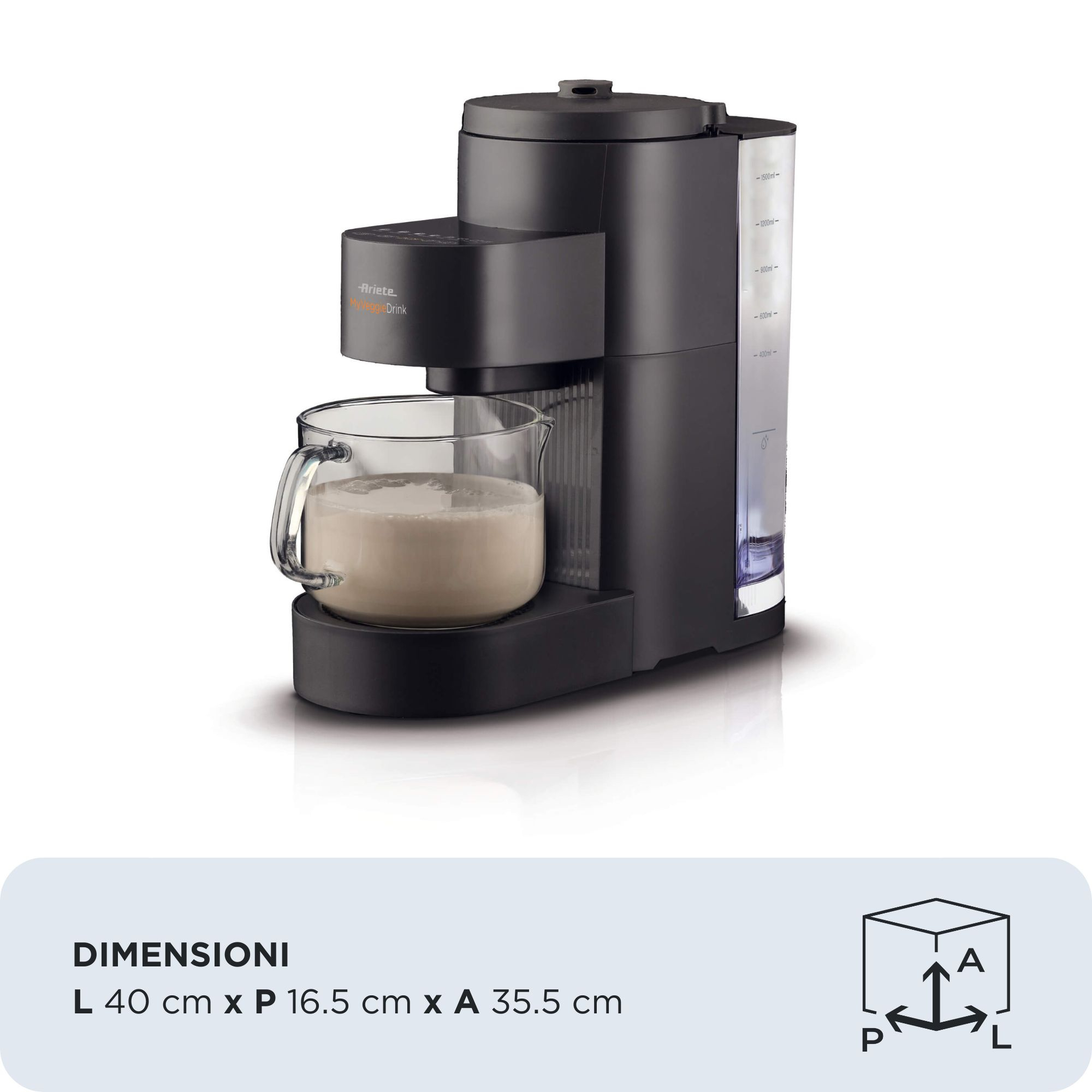 Ariete 650 My Veggie Drink, Macchina per bevande vegetali, Capacità 0,4L - 1,5L, 1200W, 6 programmi, 15 min di preparazione, Nero. Colore del prodotto: Grigio, Nero. Capacità ciotola: 1,5 L. Materiale lama: Acciaio inox. Potenza: 1200 W. Larghezza: 165 mm, Profondità: 400 mm, Altezza: 355 mm