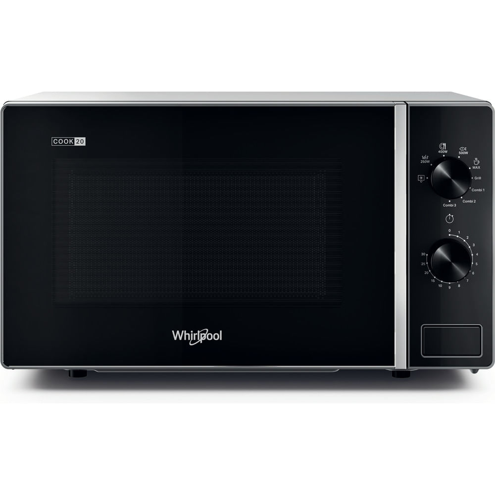 Whirlpool Cook20 Microonde a libera installazione - MWP 103 SB. Posizionamento dell'apparecchio: Superficie piana, Tipo di prodotto: Microonde con grill, Capacità interna: 20 L, Potenza Microonde: 700 W, Tipo di controllo: Manopola, Colore del prodotto: Nero, Argento