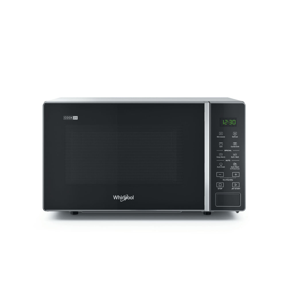 Whirlpool Cook20 Microonde a libera installazione - MWP 203 SB. Posizionamento dell'apparecchio: Superficie piana, Tipo di prodotto: Microonde con grill, Capacità interna: 20 L, Potenza Microonde: 700 W, Display incorporato, Tipo di controllo: Touch, Colore del prodotto: Nero, Argento