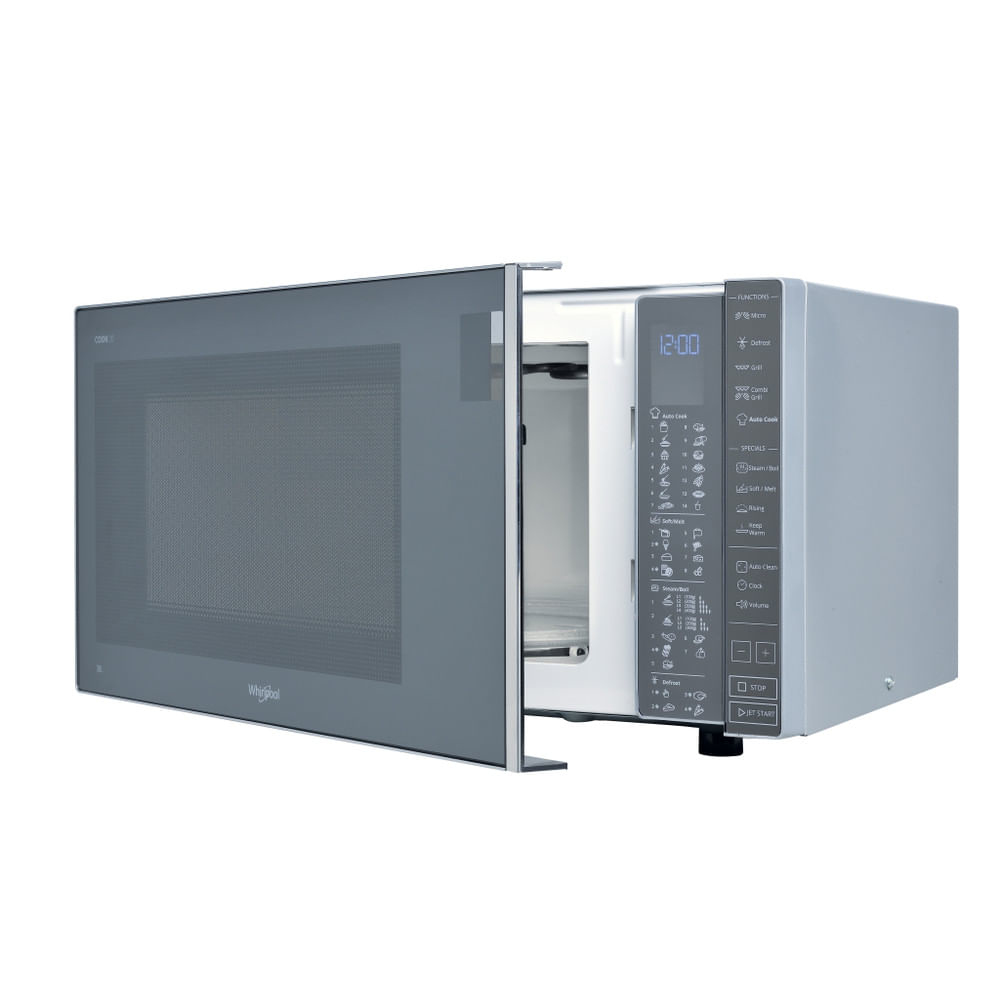 Whirlpool Cook30 Microonde a Libera installazione MWP 304 M. Posizionamento dell'apparecchio: Superficie piana, Tipo di prodotto: Microonde con grill, Capacità interna: 30 L, Potenza Microonde: 900 W, Display incorporato, Tipo di display: LCD, Tipo di controllo: Touch, Colore del prodotto: Specchio