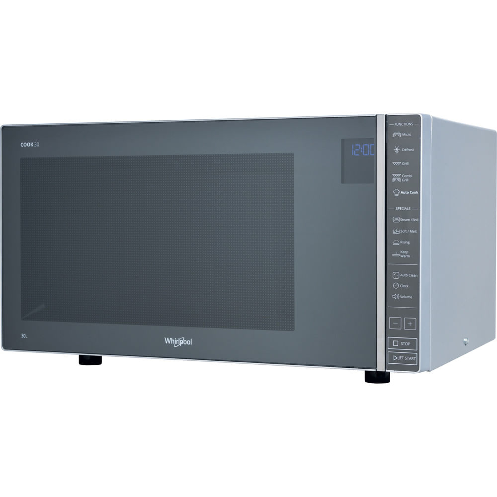 Whirlpool Cook30 Microonde a Libera installazione MWP 304 M. Posizionamento dell'apparecchio: Superficie piana, Tipo di prodotto: Microonde con grill, Capacità interna: 30 L, Potenza Microonde: 900 W, Display incorporato, Tipo di display: LCD, Tipo di controllo: Touch, Colore del prodotto: Specchio