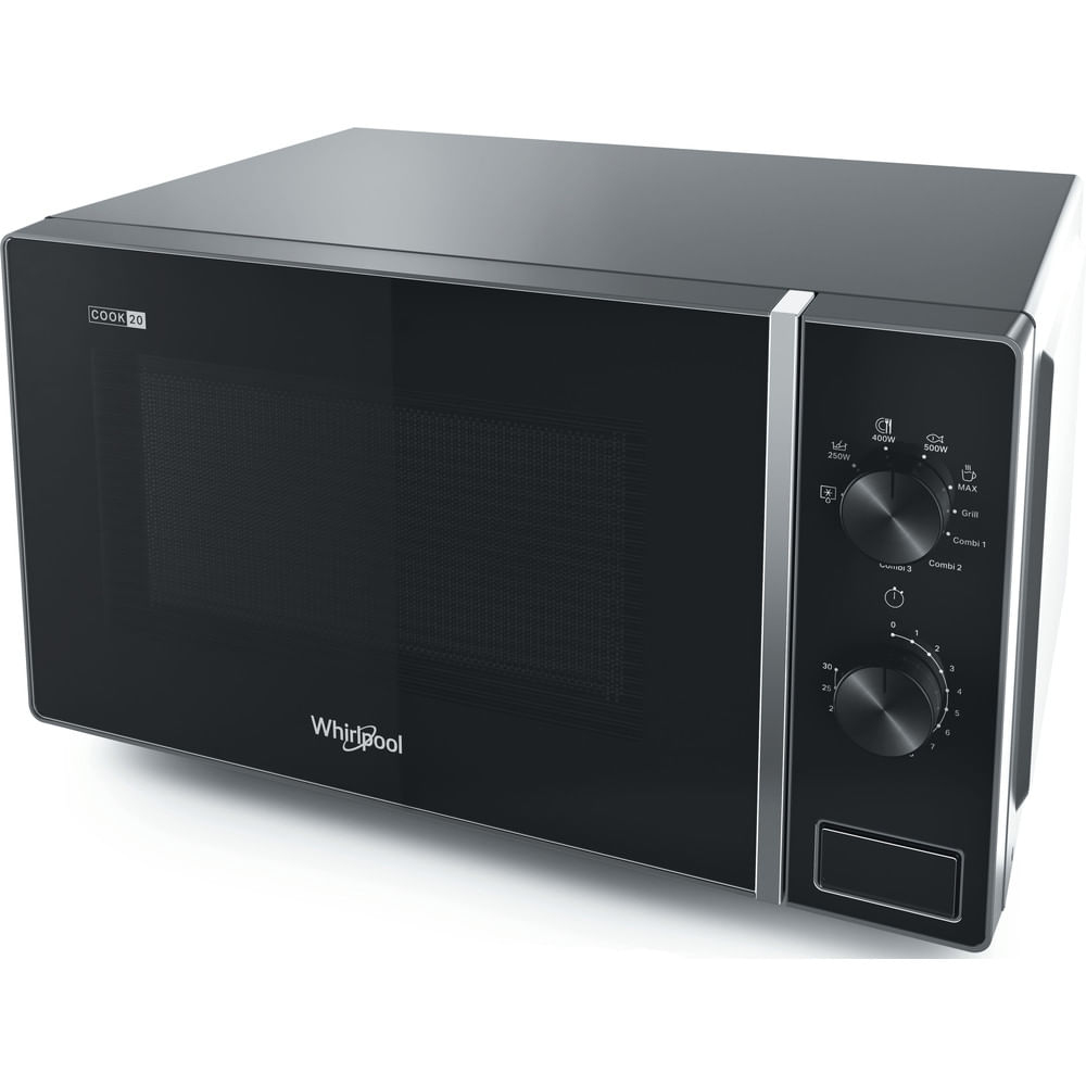 Whirlpool Cook20 Microonde a libera installazione - MWP 103 SB. Posizionamento dell'apparecchio: Superficie piana, Tipo di prodotto: Microonde con grill, Capacità interna: 20 L, Potenza Microonde: 700 W, Tipo di controllo: Manopola, Colore del prodotto: Nero, Argento
