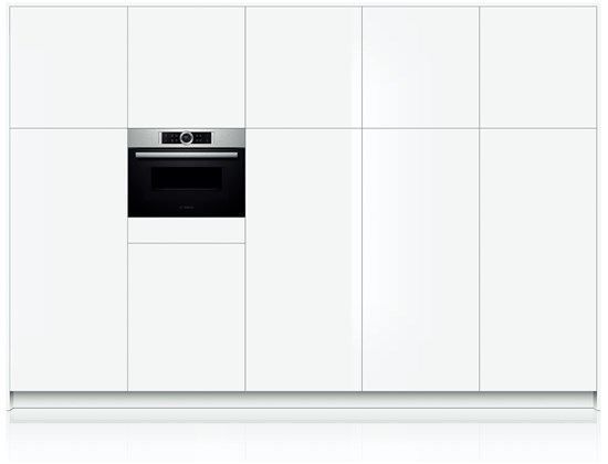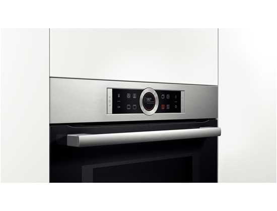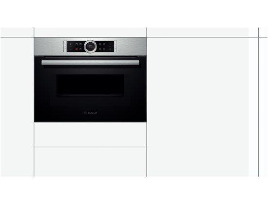 Bosch CMG633BS1. Potenza Microonde: 1000 W. Colore del prodotto: Acciaio inox, Tipo di controllo: Touch, Tipo di display: TFT. Tipo di orologio: Elettronico. Carico di collegamento: 3650 W, Tensione di ingresso AC: 220-240 V, Frequenza di ingresso AC: 50 - 60 Hz. Larghezza: 595 mm, Profondità: 548 mm, Altezza: 455 mm