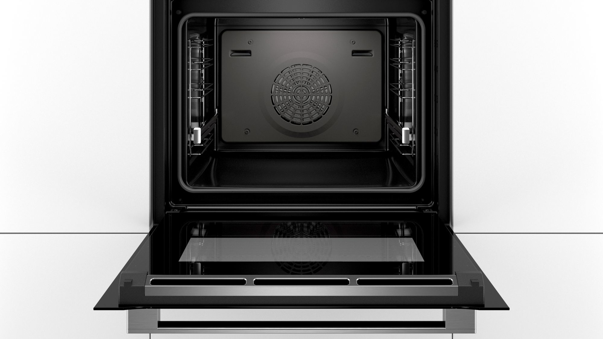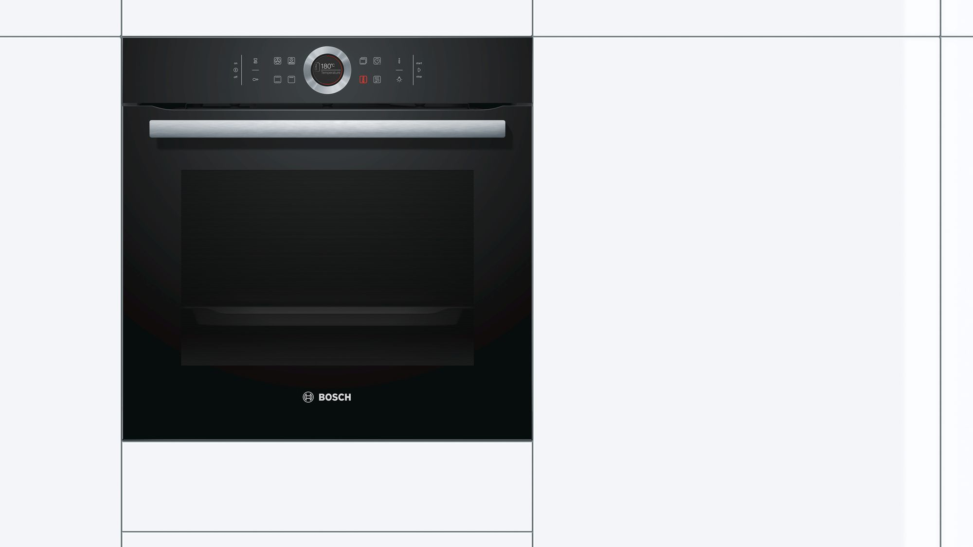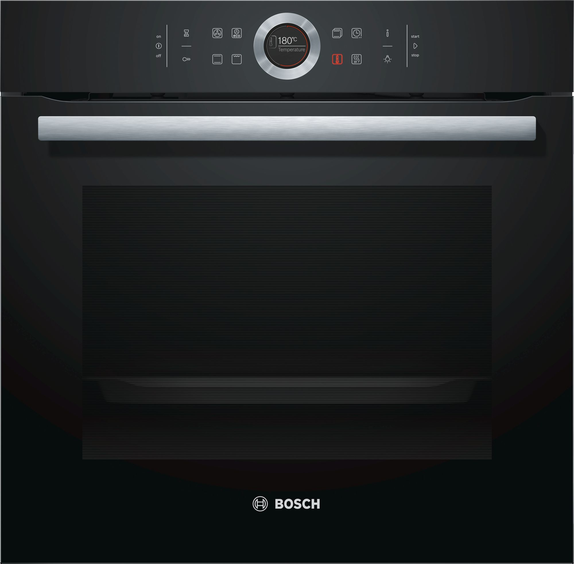 Bosch Serie 8 HBG633NB1. Dimensione del forno: Media, Tipo di forno: Forno elettrico, Capacità interna forno totale: 71 L. Posizionamento dell'apparecchio: Da incasso, Colore del prodotto: Nero, Tipo di controllo: Touch. Tipo di orologio: Elettronico. Consumo energetico (convenzionale): 0,87 kWh, Consumo energetico (convezione forzata): 0,69 kWh, Scala di efficienza energetica: Da A+++ a D. Tipo di lampada: Alogena