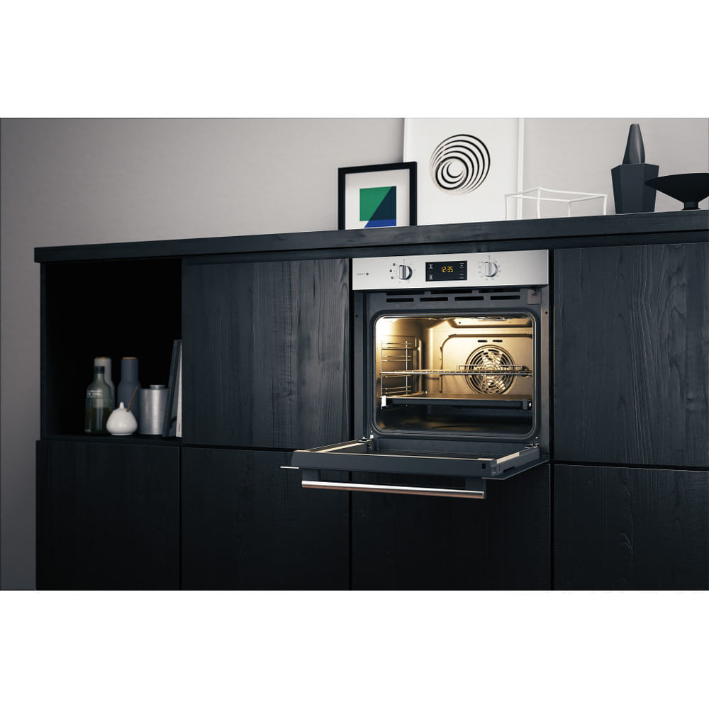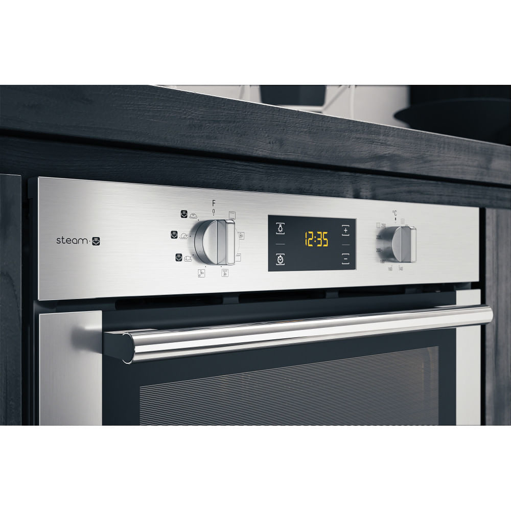 Hotpoint Ariston Active Steam Forno da incasso FA4S 544 IX HA. Dimensione del forno: Media, Tipo di forno: Forno elettrico, Capacità interna forno totale: 71 L. Posizionamento dell'apparecchio: Da incasso, Colore del prodotto: Acciaio inox, Tipo di controllo: Manopola, Touch. Tipo di orologio: Elettronico, Tipo di timer: Digitale. Classe efficienza energetica: A, Consumo energetico (convenzionale): 0,99 kWh, Consumo energetico (convezione forzata): 0,81 kWh. Larghezza del compartimento: 56 cm, Profondità del compartimento: 56 cm, Altezza del compartimento: 60 cm